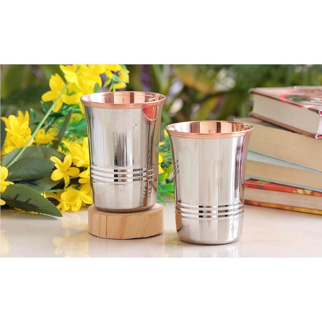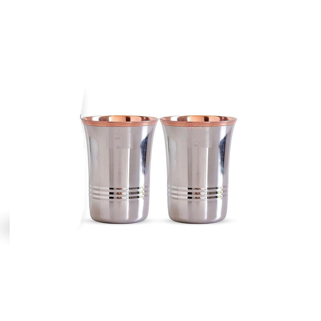 Сталь Медь Стекло Набор из 2, Материал:- Сталь Медь, Цвет:- Серебристый и коричневый, Деталь одного стекла:- объем:- 250 МЛ, Высота:-4'' дюйма, Ширина:-3 дюйма дюймов