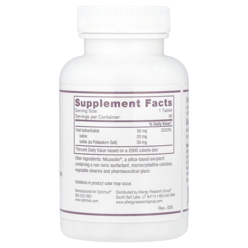 Contains 50 mg of elemental iodine per tablet