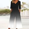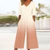 Женский свободный повседневный комбинезон с V-образным вырезом и градиентным принтом, приталенный, с широкими штанинами