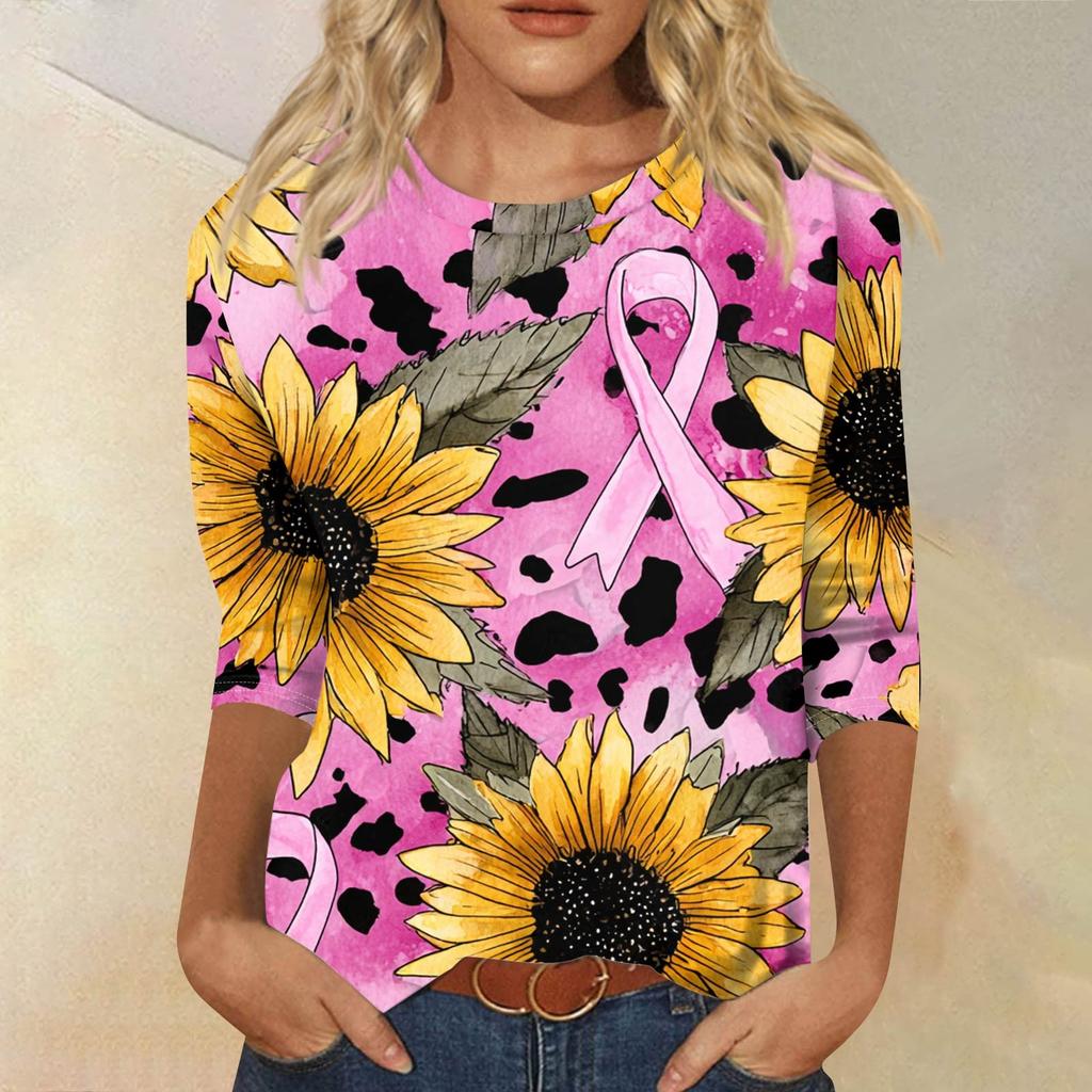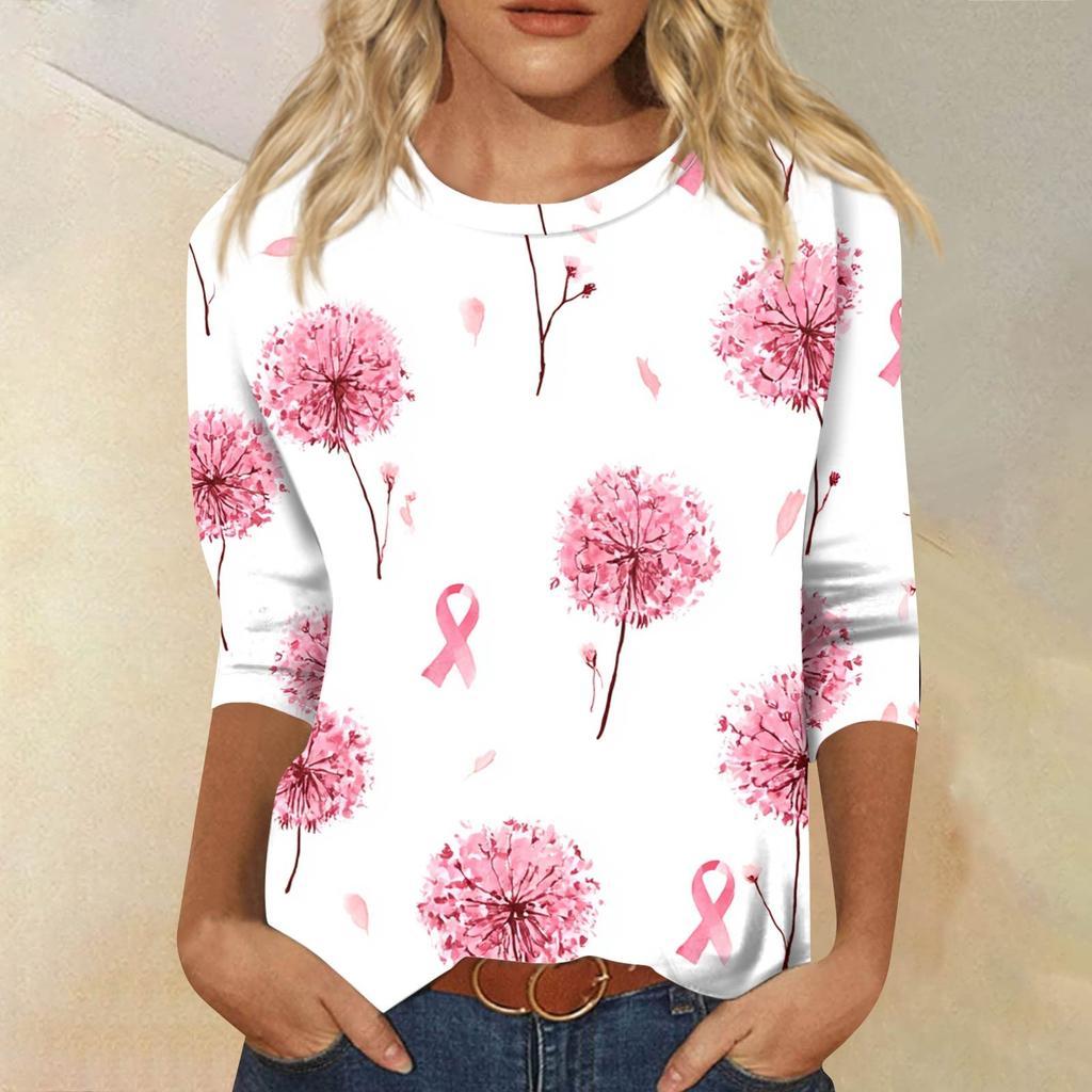 Женская модная повседневная блузка с рукавами 7/8, принтом, свободного кроя, с круглым вырезом