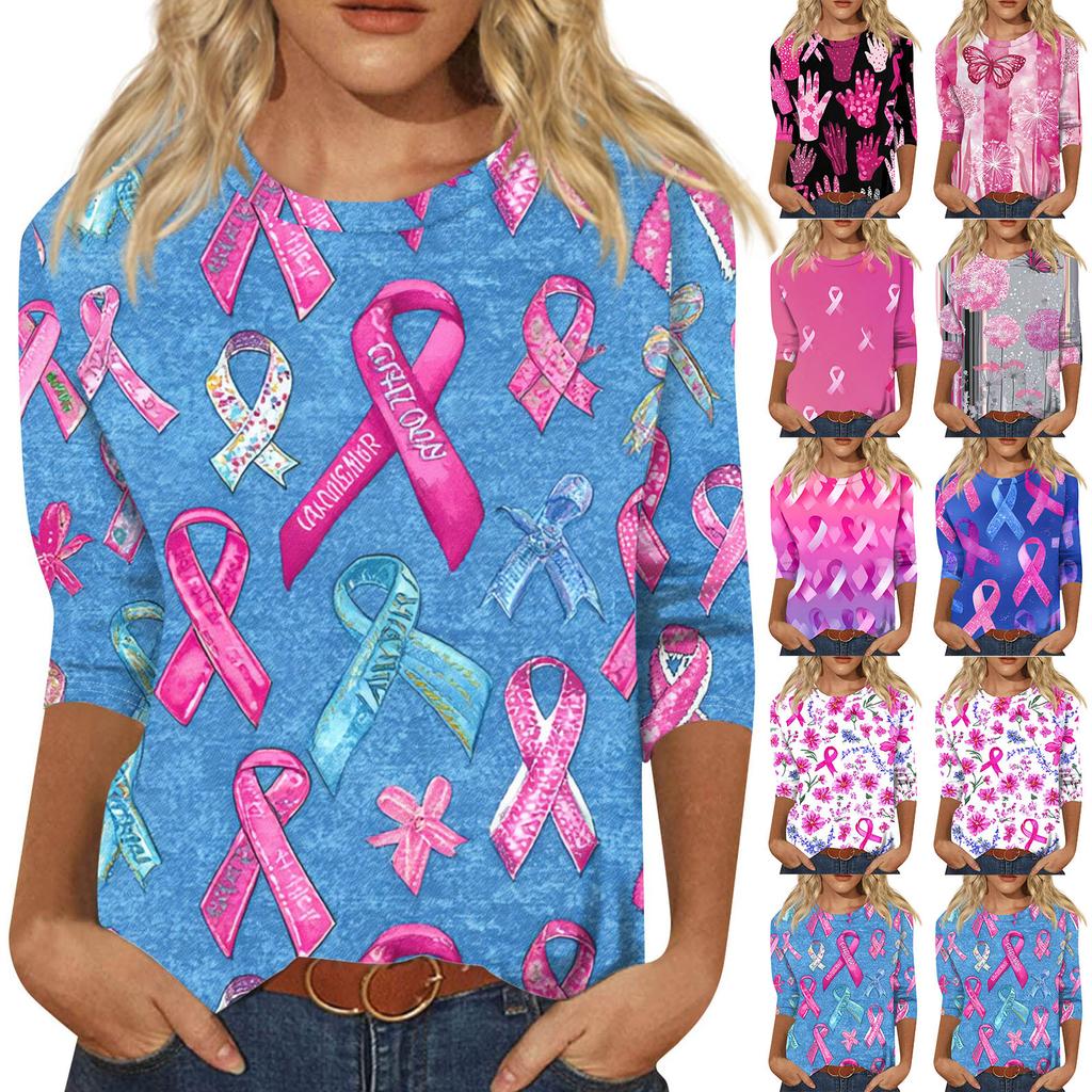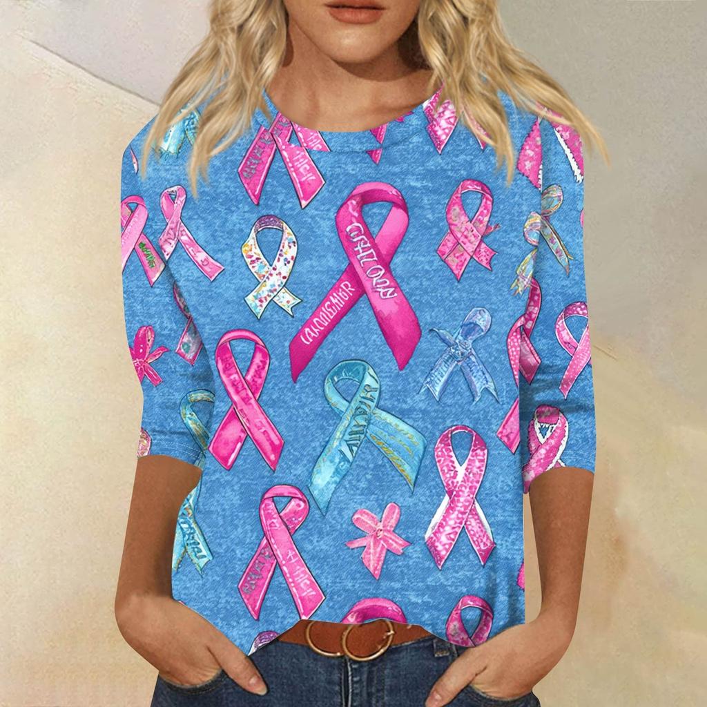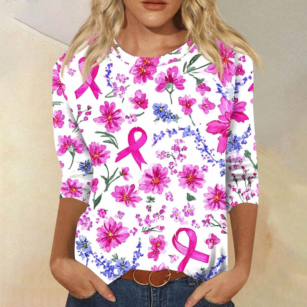 Женская модная повседневная блузка с рукавами 7/8, принтом, свободного кроя, с круглым вырезом