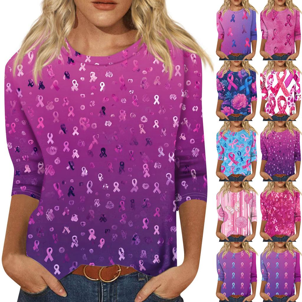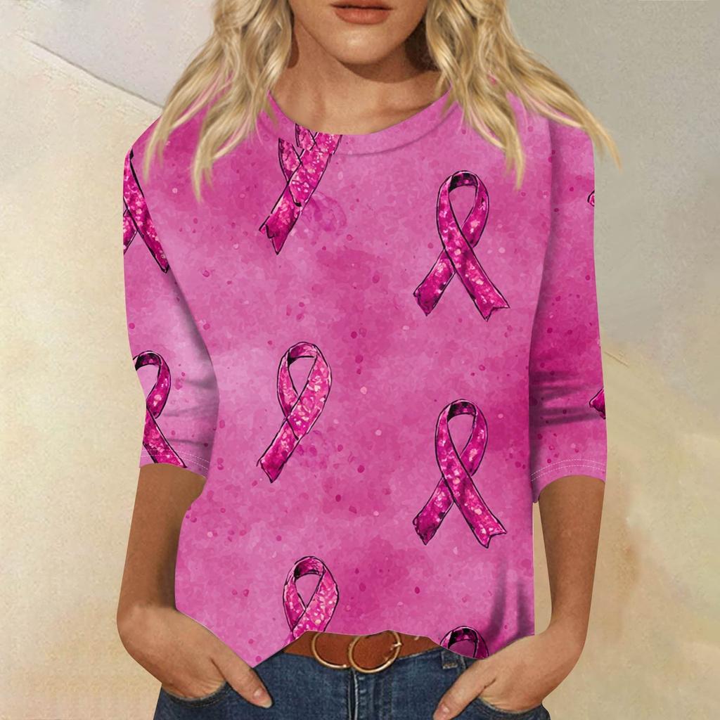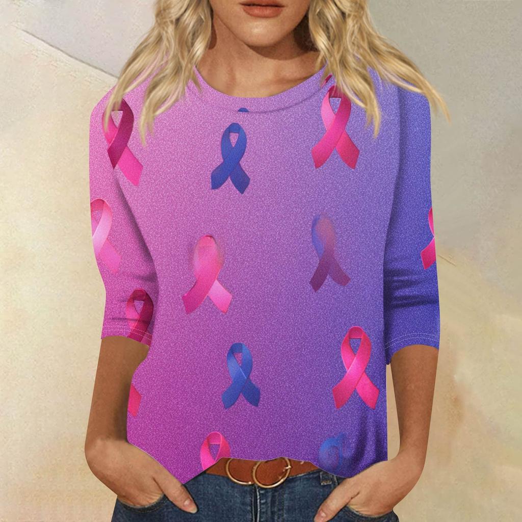 Женская модная повседневная блузка с рукавами 7/8, принтом, свободного кроя, с круглым вырезом