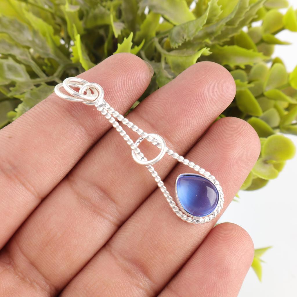 Ювелирные изделия из камня «кошачий глаз» темно-синего цвета, подвеска из стерлингового серебра 925 пробы, дизайнерская серебряная подвеска ручной работы для свадебного подарка