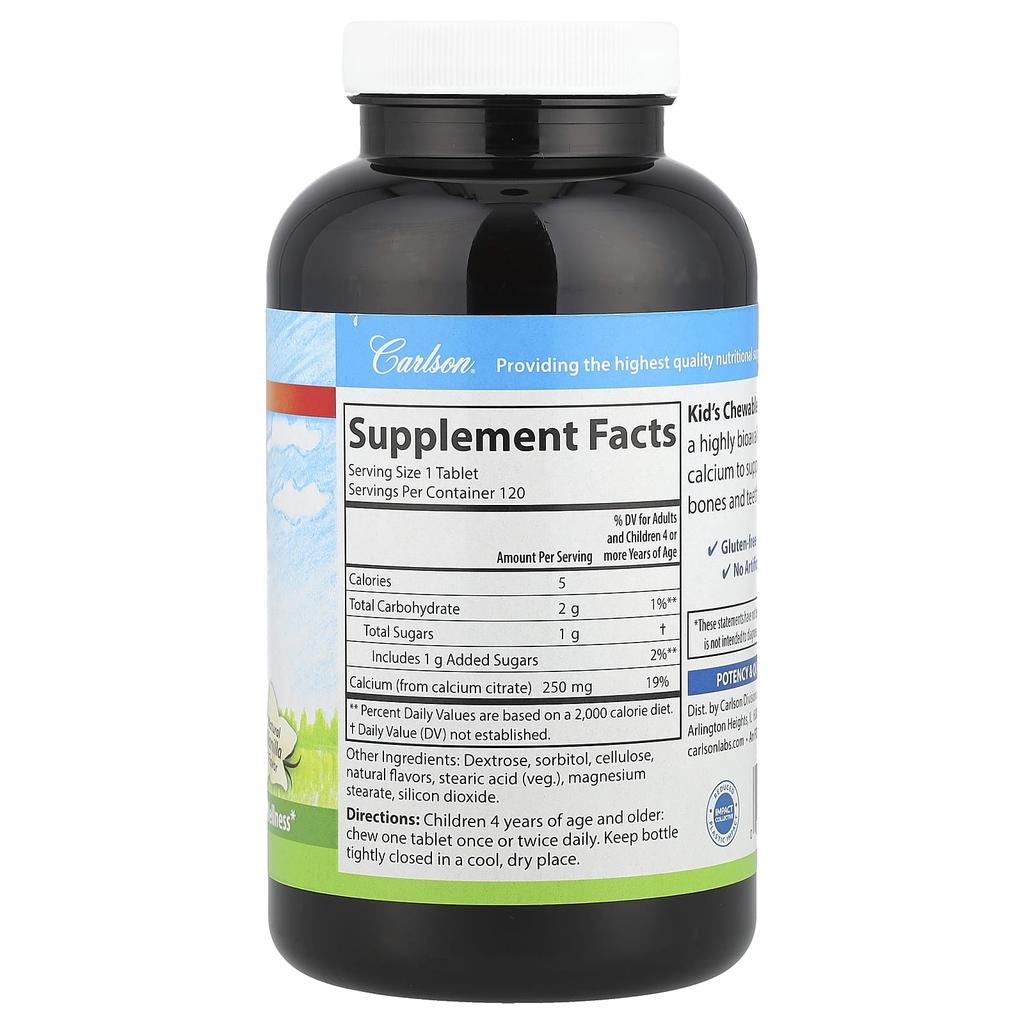 Kids Chewable Calcium Natural Vanilla Flavor 250Mg 120 Tablets