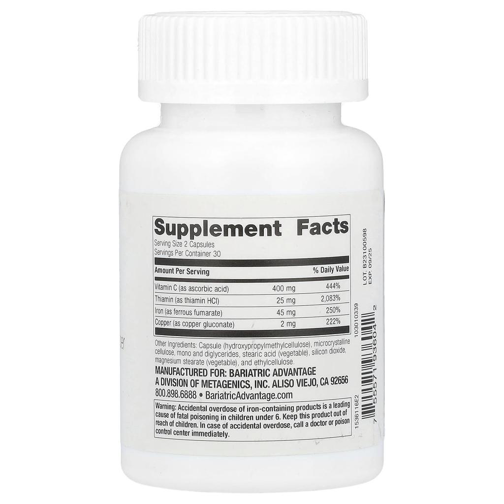 Железо с витамином С, тиамином и медью, 60 капсул