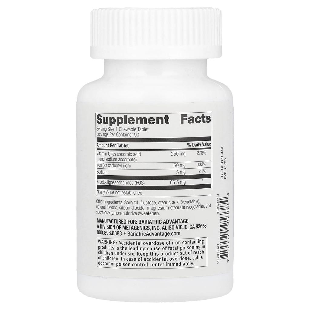 Chewable Iron with Vitamin C, Lemon & Lime, 60Mg, 90 Tablets