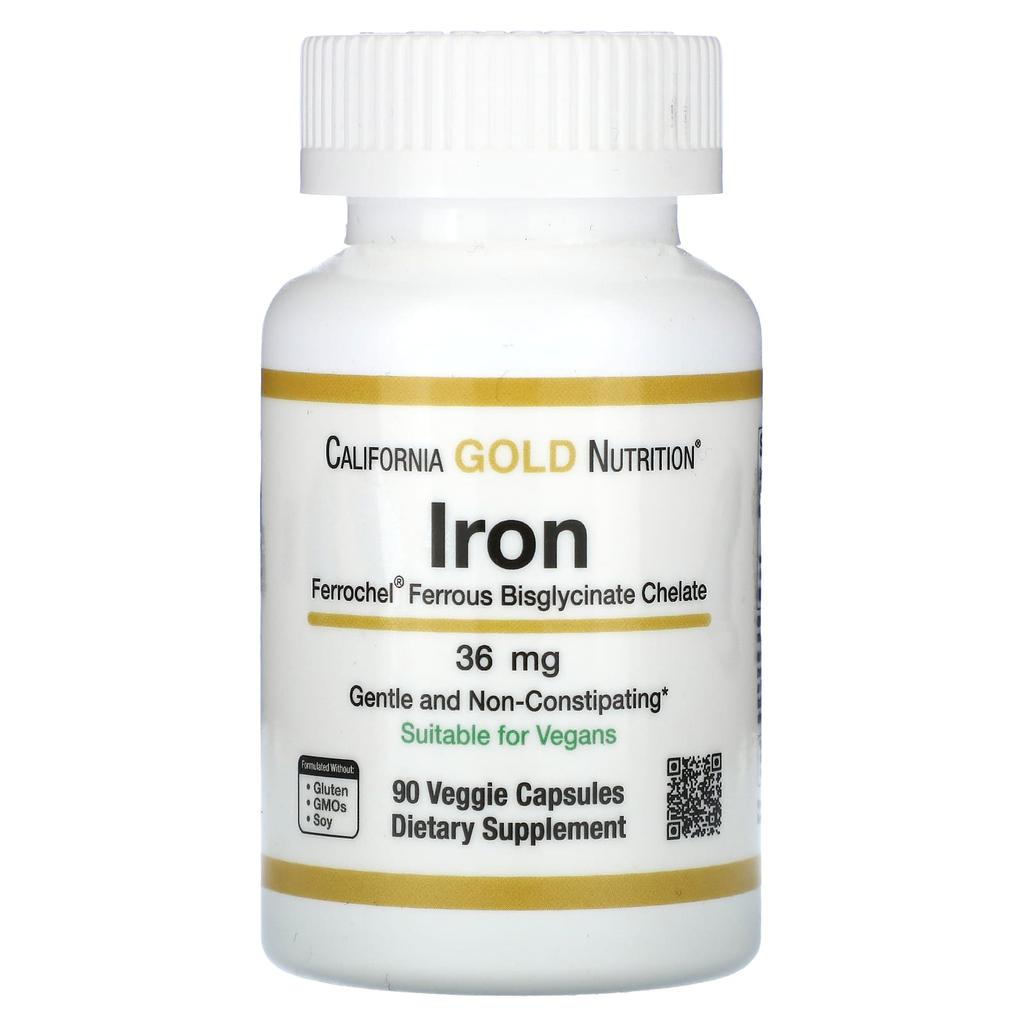Железо Ferrochel® от California Gold Nutrition содержит хелат железа глицината пара, не вызывающую раздражения и запоров форму железа.* Подходит для вегетарианцев и веганов, не содержит глютена, ГМО и сои.