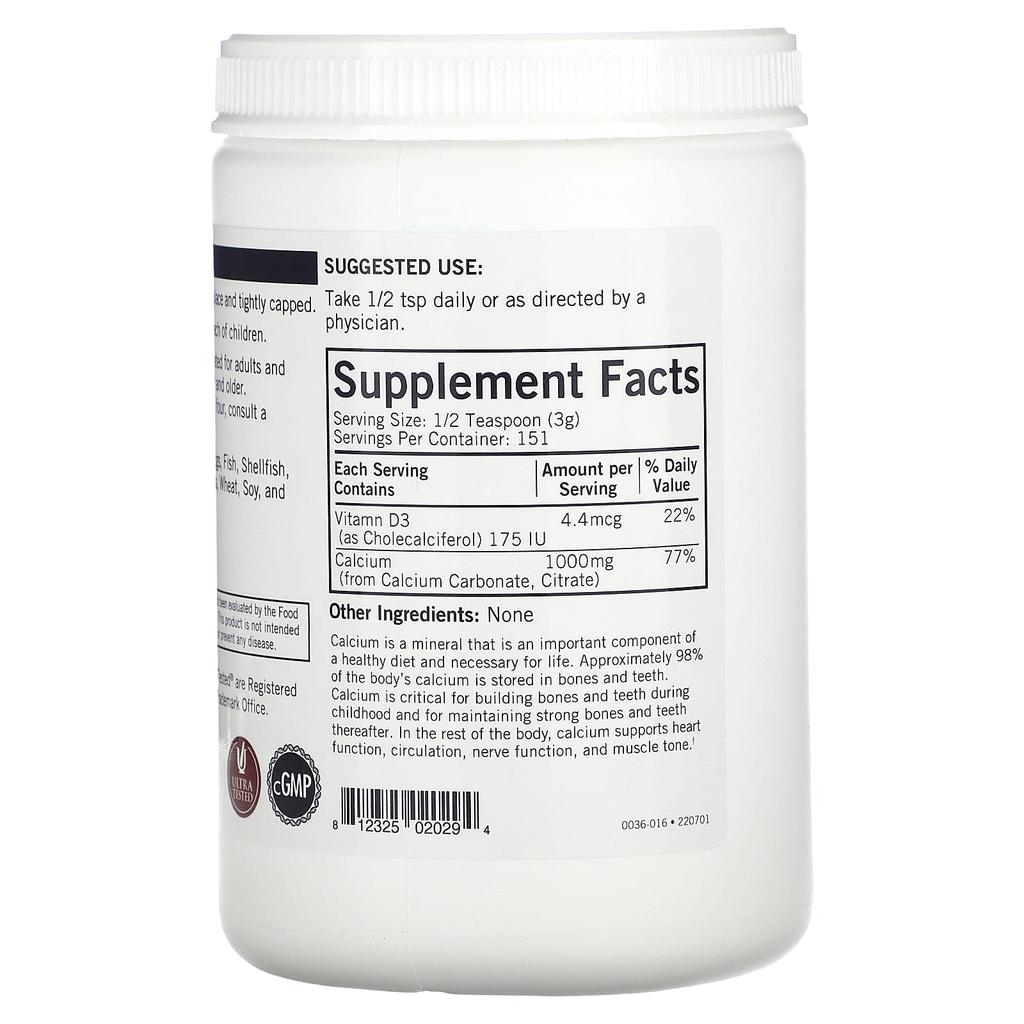 Calcium Unflavored Powder with Vitamin D-3, 16 oz (454 g)