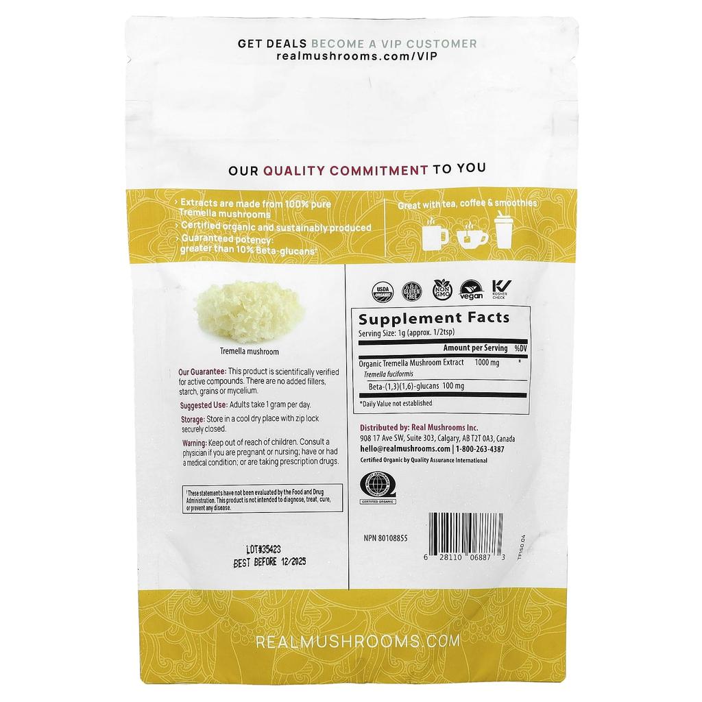 Тремелла, Органический порошок экстракта гриба, 150 г(5.29 унц)