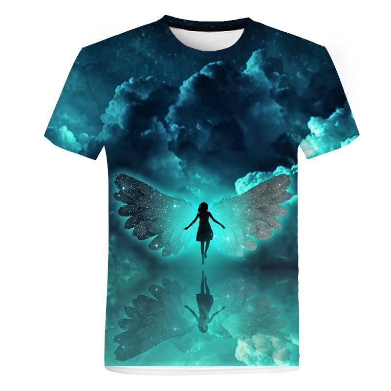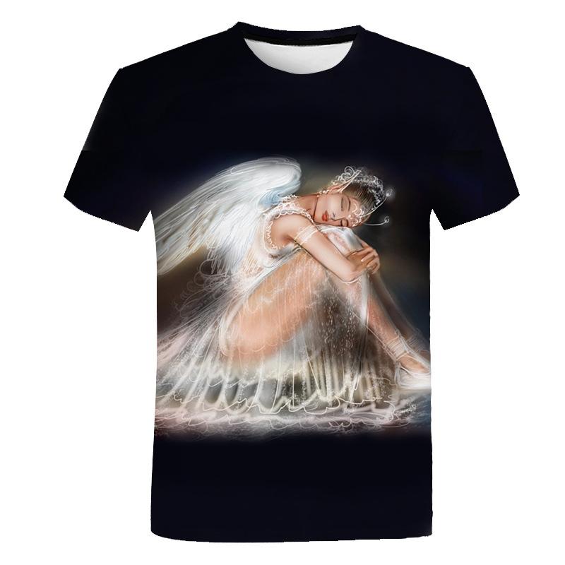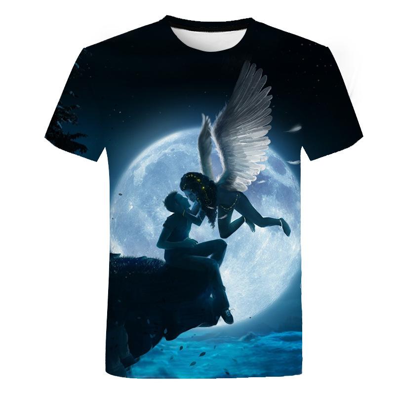 Модная трендовая футболка с коротким рукавом и 3D цифровой печатью с рисунком ангела для мужчин и женщин