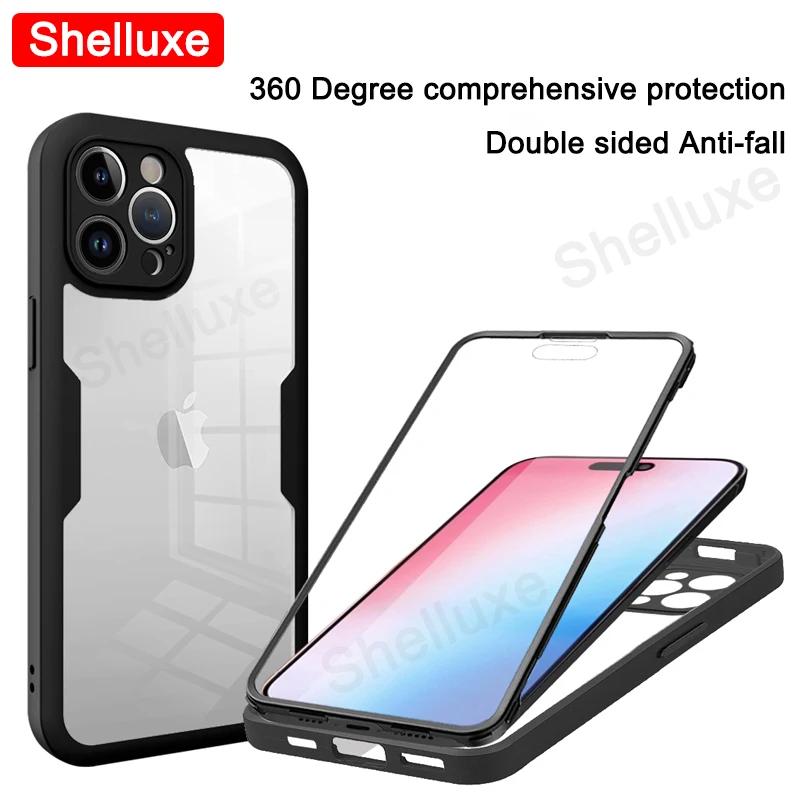 Прозрачный чехол Shelluxe 360 на весь корпус (передняя + задняя часть) для iPhone 16 15 14 Plus 13 12 11 Pro Max, силиконовый противоударный двусторонний чехол — купить товар онлайн с бесплатной доставкой по всему миру!