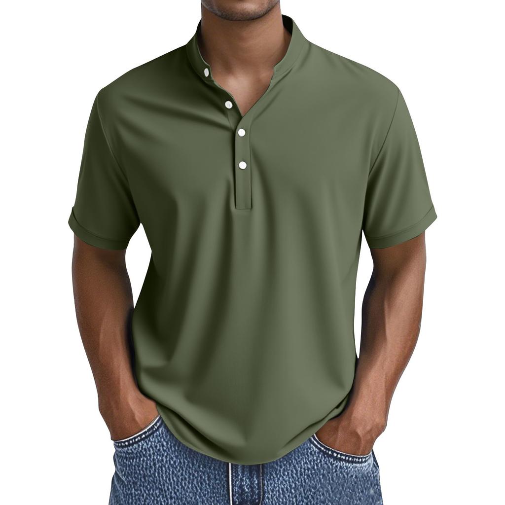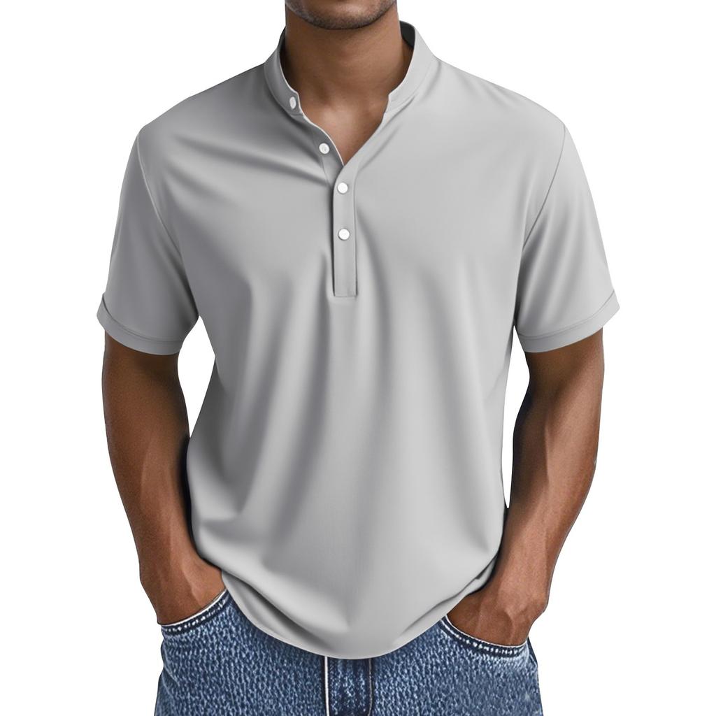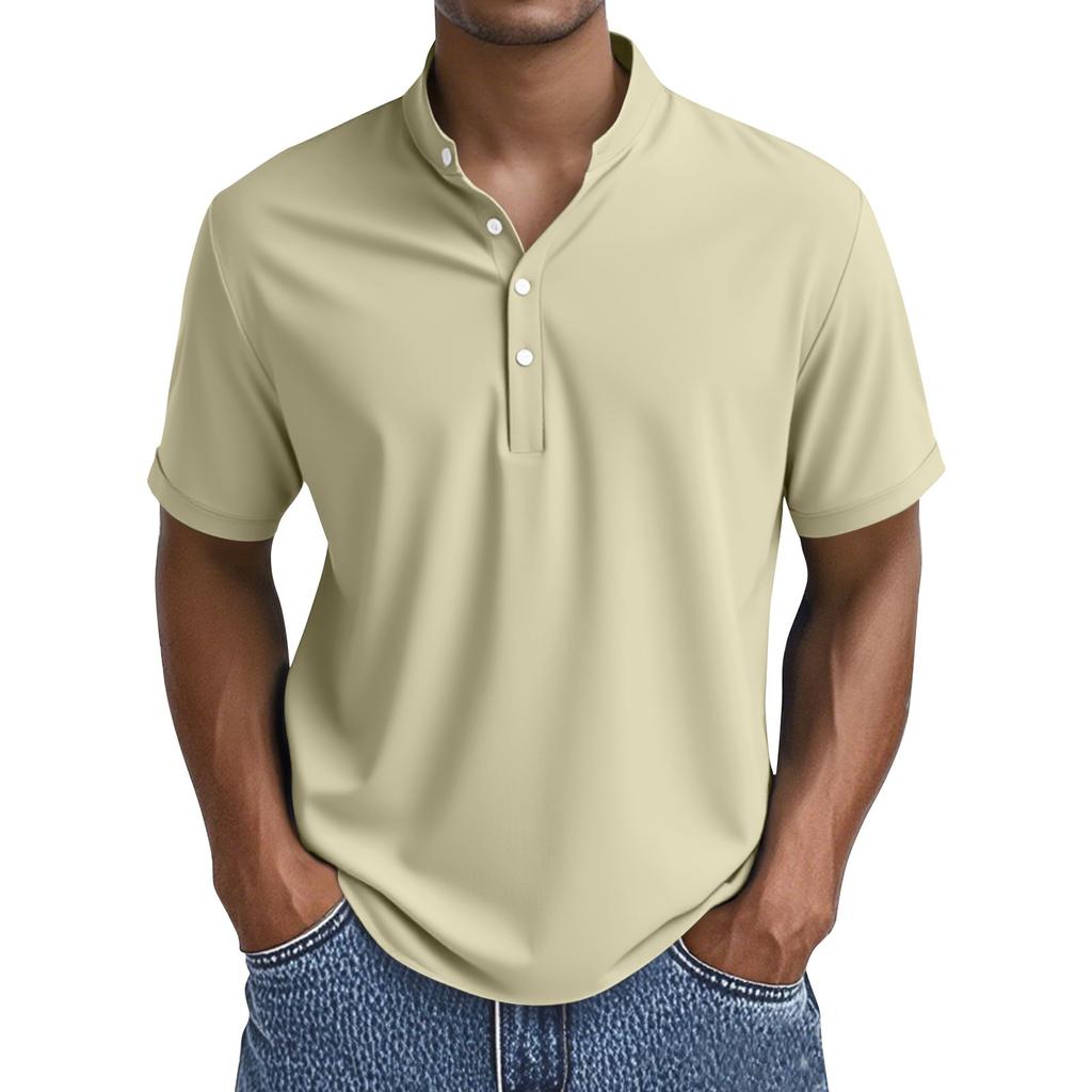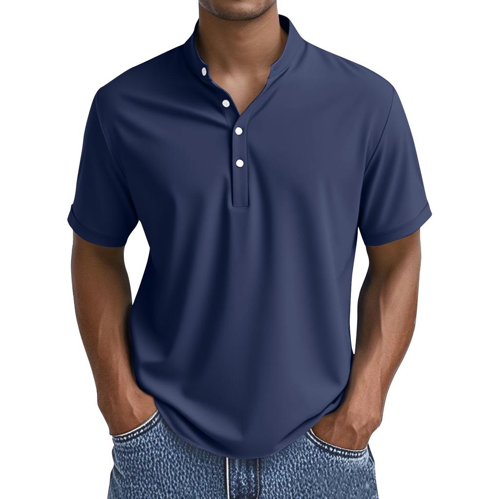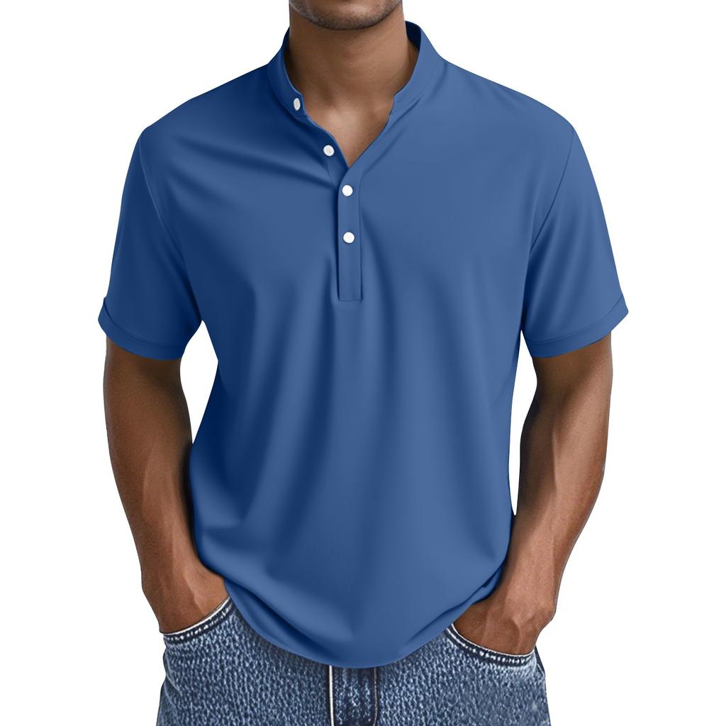 Мужские летние однотонные топы с воротником на пуговицах и коротким рукавом, мужские повседневные свободные модные топы