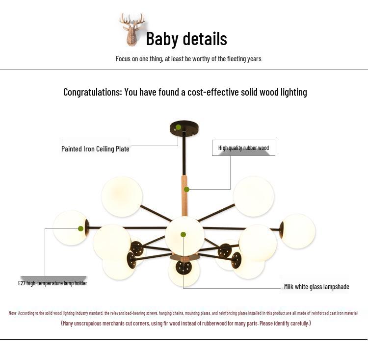 Деревянная люстра Nordic Magic Bean - Современная, Креативная, Стильная лампа из массива дерева для гостиной, спальни или ресторана.