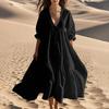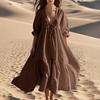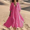 Женское летнее модное однотонное платье с V-образным вырезом и короткими рукавами для пляжа, платье с кружевной отделкой