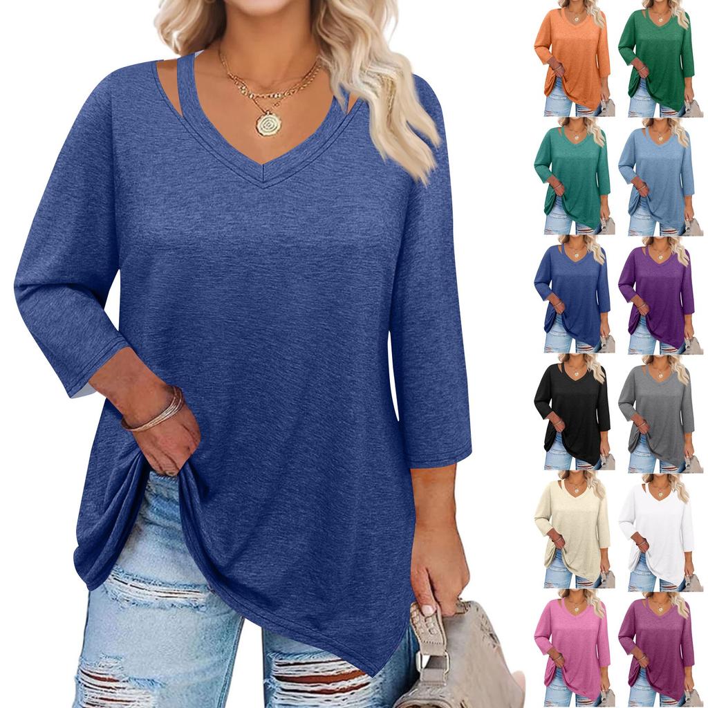 Женские однотонные топы больших размеров с вырезом в виде капли и рукавом 3/4, элегантные повседневные топы