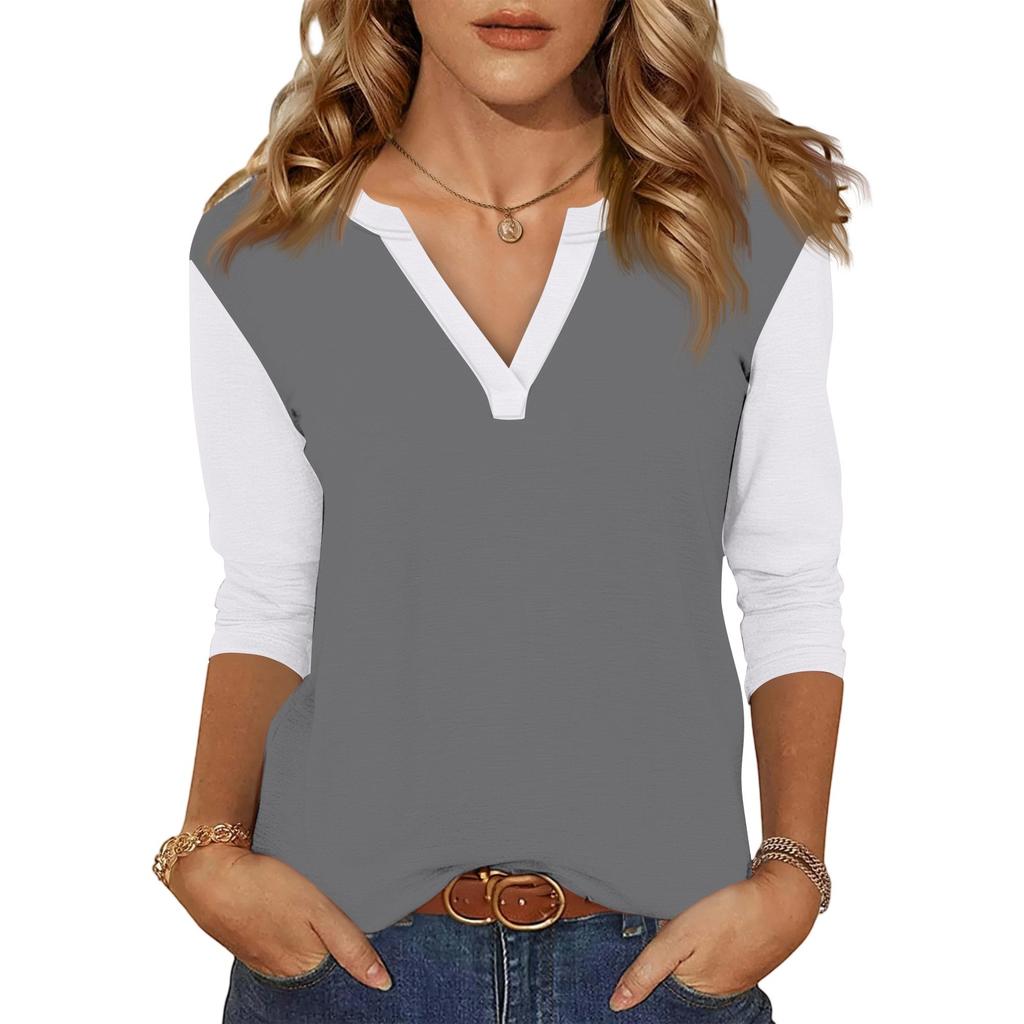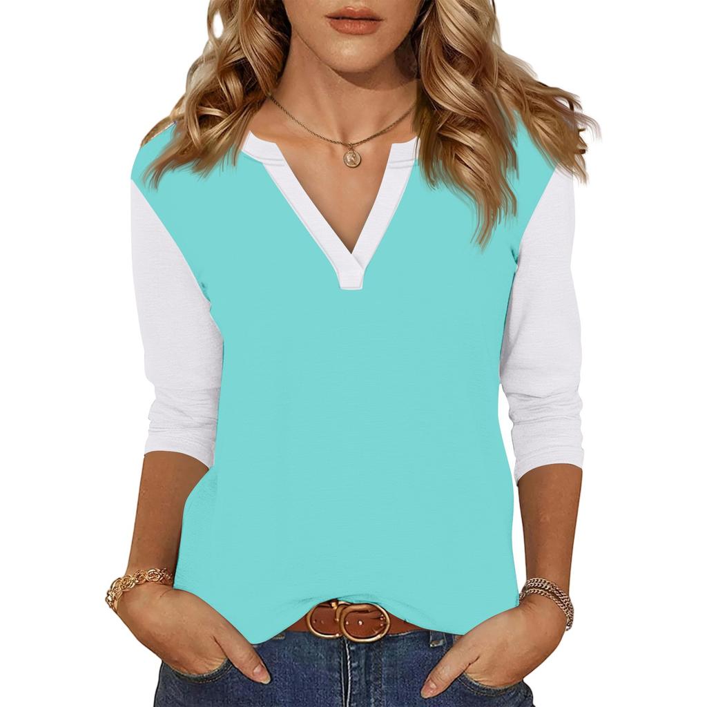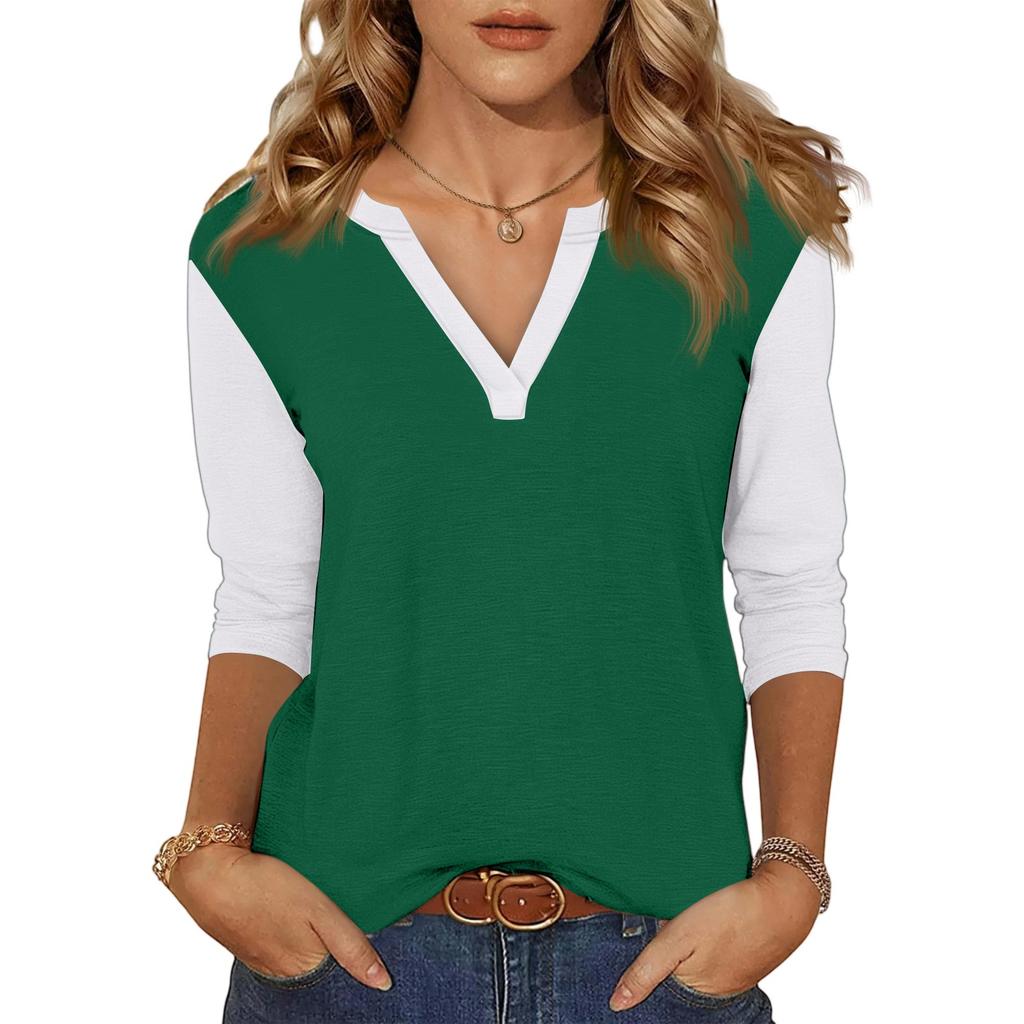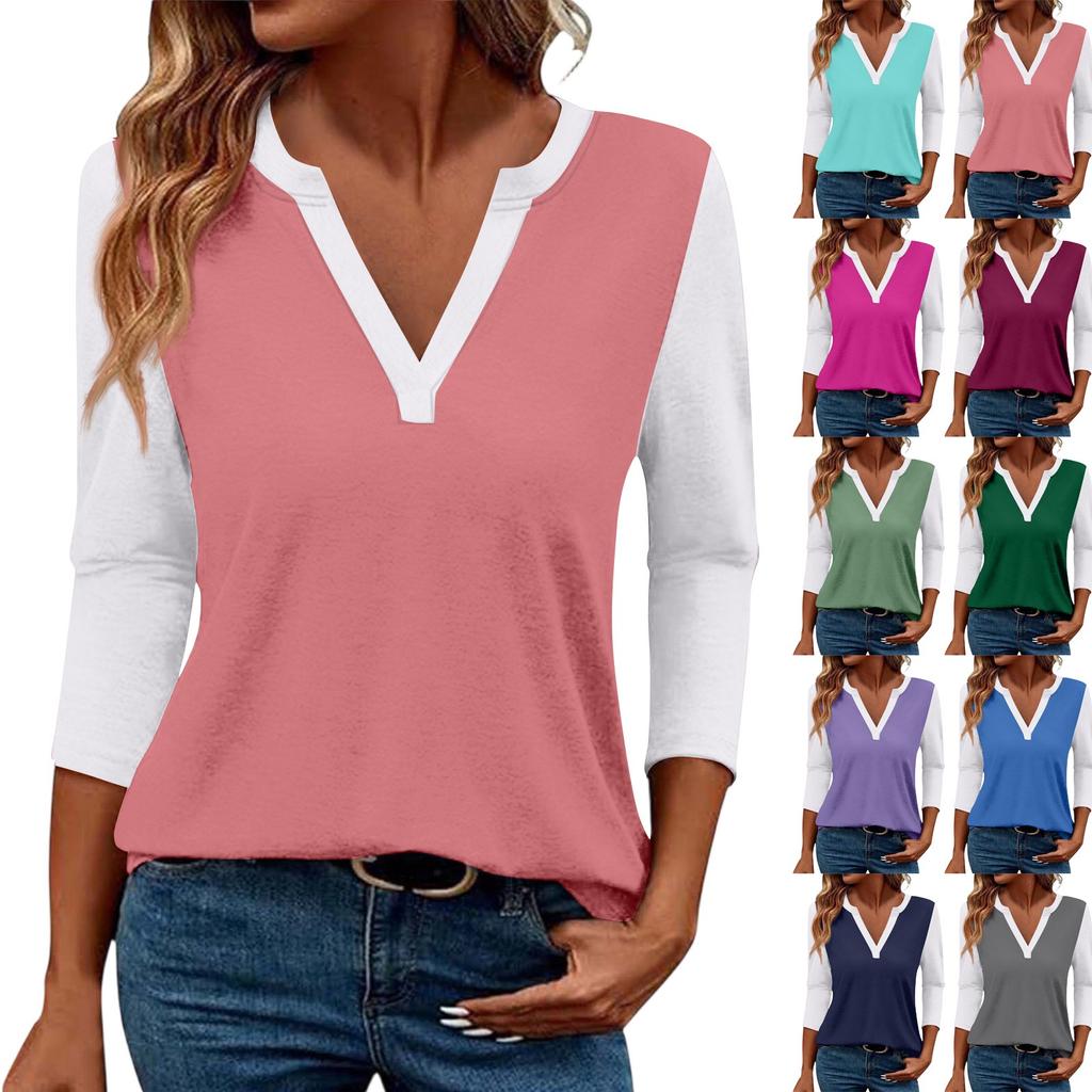 Женский повседневный модный сексуальный удобный топ с V-образным вырезом, цветной вставкой и рукавом три четверти