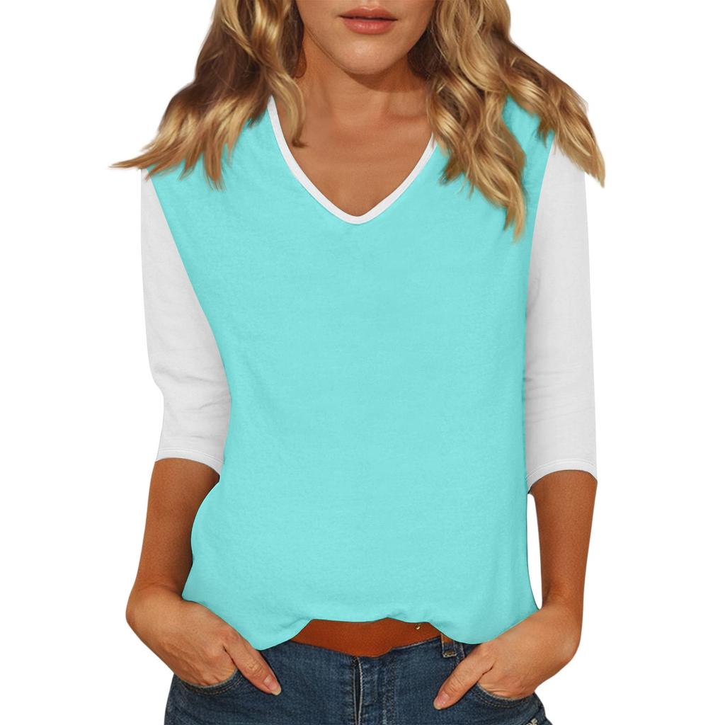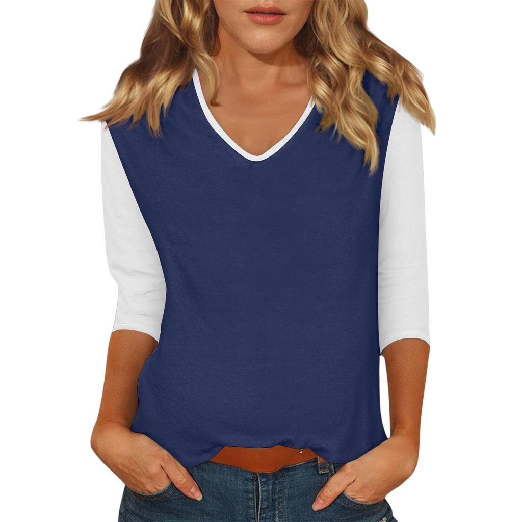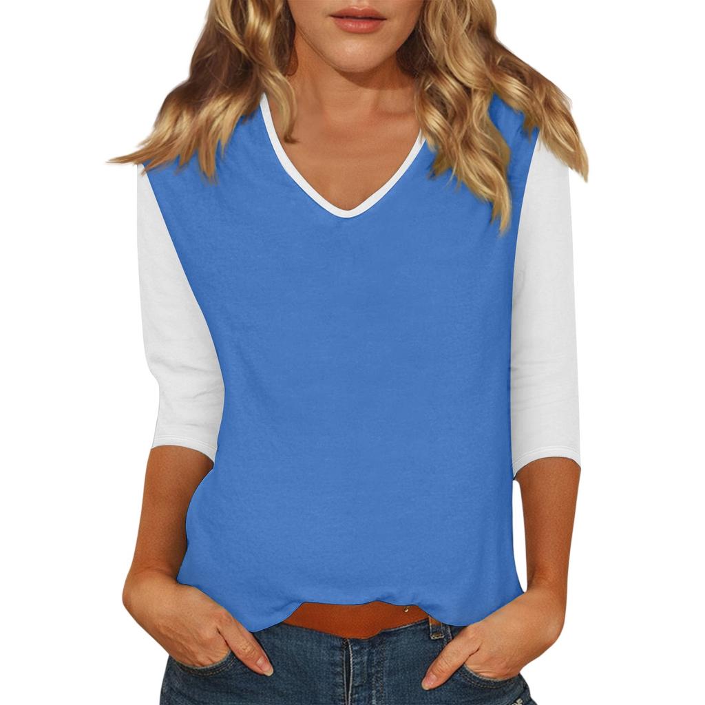 Женский повседневный модный сексуальный удобный топ с V-образным вырезом, цветной вставкой и рукавом три четверти