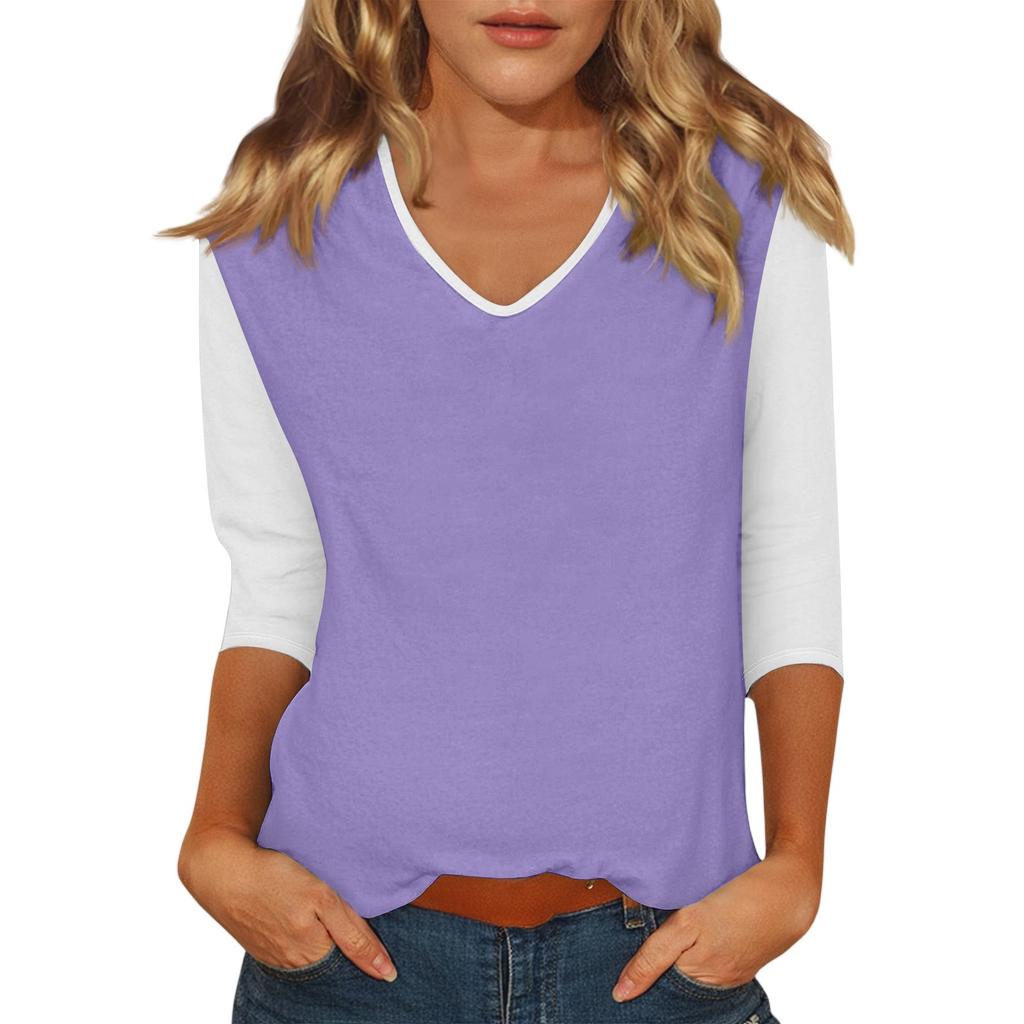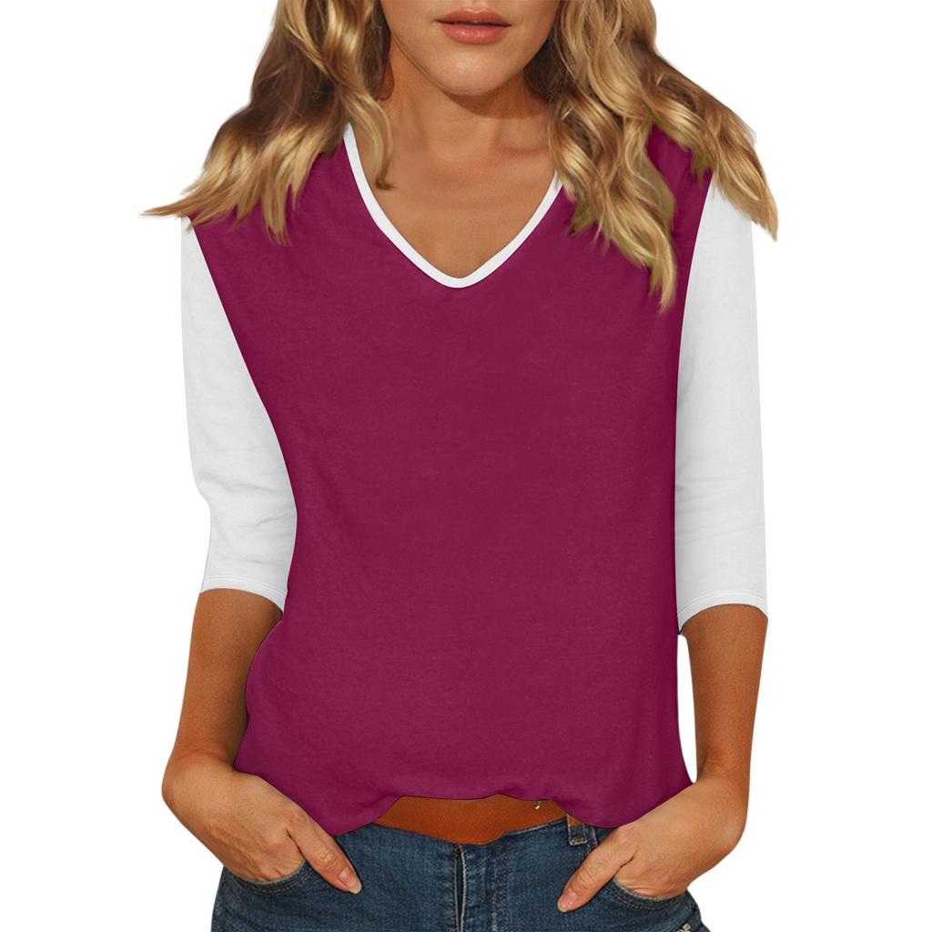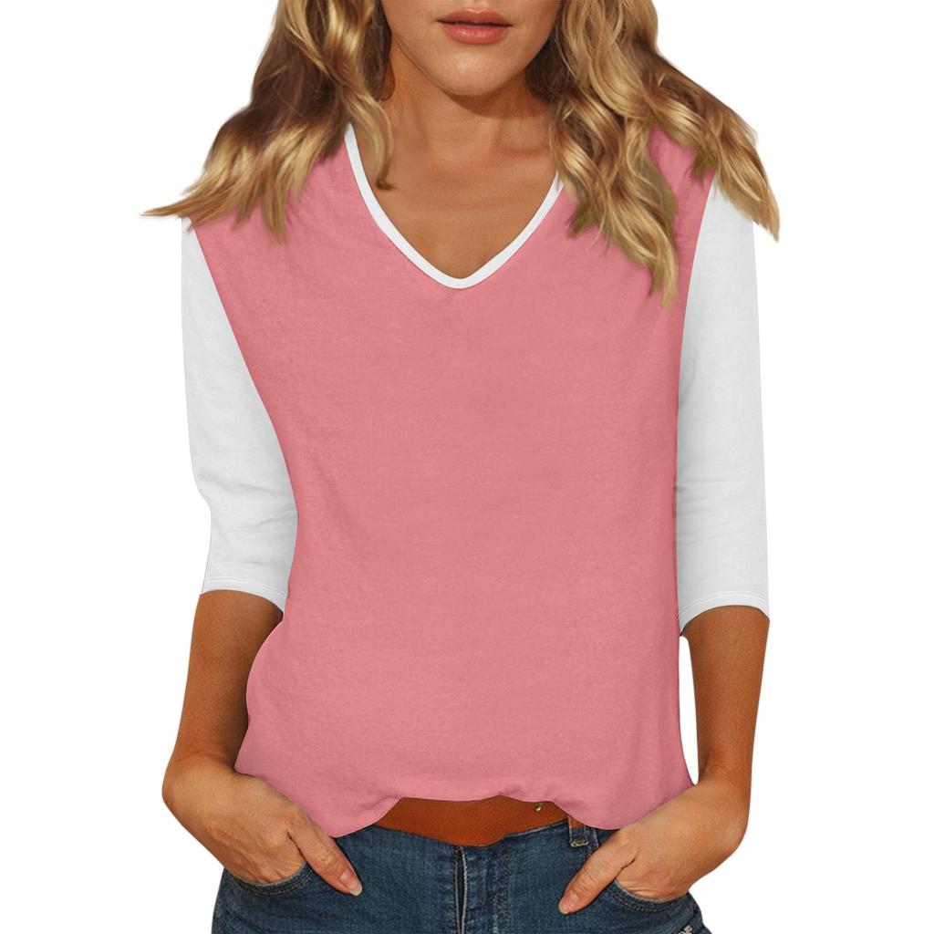 Женский повседневный модный сексуальный удобный топ с V-образным вырезом, цветной вставкой и рукавом три четверти