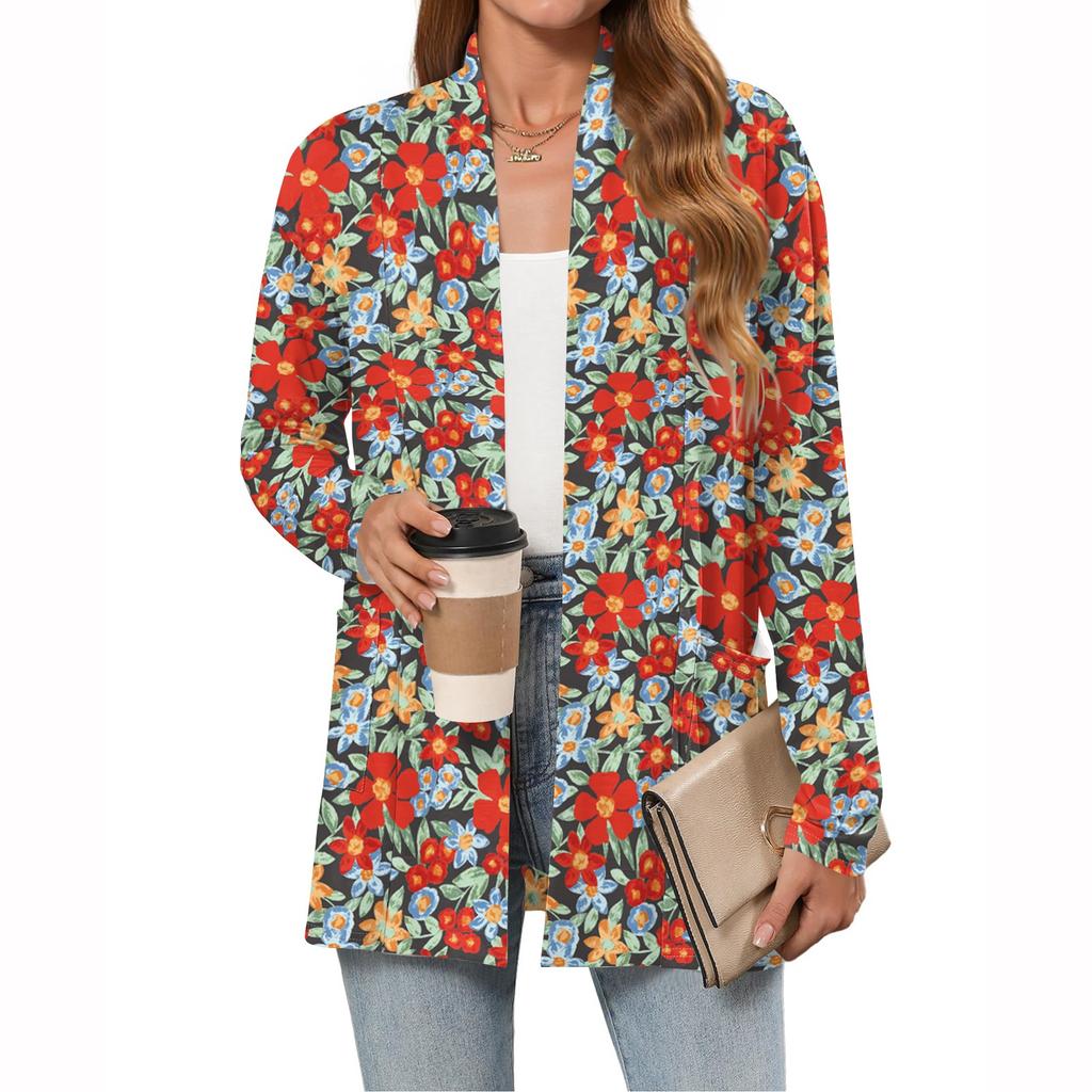 Женские легкие кардиганы с открытой передней частью, с длинными рукавами, повседневные, свободные, тонкие кардиганы с карманами