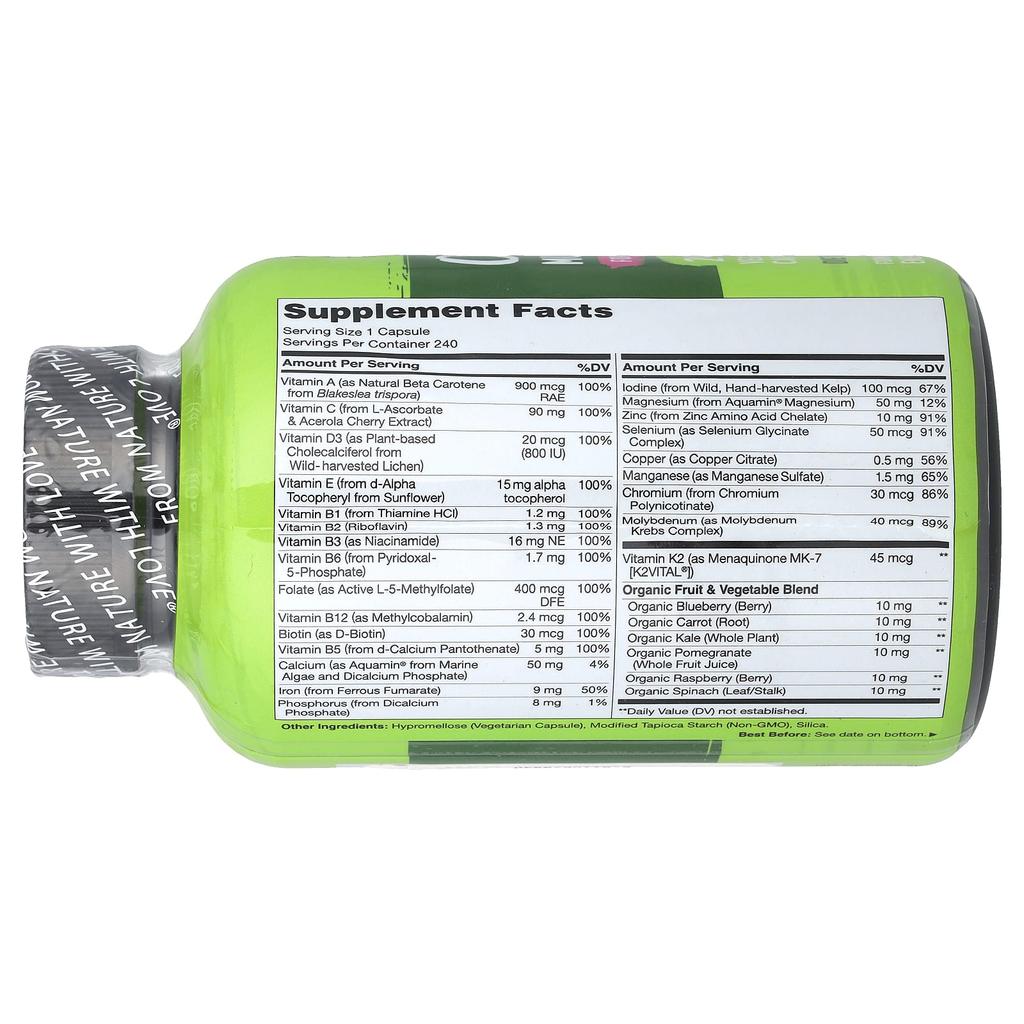 Product Description: From Nature With Love® Supplement Formula for Energy, Immune and Bone HealthGMO-FreeSoy-FreeGluten-FreeVegan-FriendlyNo Colors, Preservatives or FlavorsGMP - Good Manufacturing Practices - Consistent QualityGood for Vegans and VegetariansALL IN ONE: A daily multivitamin for women that provides 24 essential vitamins and minerals to support women's health, plus organic fruits and vegetables to support the nutrients and antioxidant benefits of whole foods.BOTANICAL INGREDIENTS: Contains premium plant-based vitamins and minerals, including vitamin D3 from lichen, vitamin E from sunflower, calcium and magnesium from algae, and iodine from algae.BIOACTIVE: Contains active B vitamins, including vitamin B12 from methylcobalamin, vitamin B6 from P-5-P, and chelated minerals, such as MTHFR-compatible methylfolate (not folate), zinc and selenium, for improved absorption and bioavailability.HEALTH BENEFITS: Energy and Naturally replenishes vitality and complements your diet with vitamins, minerals and organic whole foods to improve heart, brain, eye and immune health, helping your body function at its best.