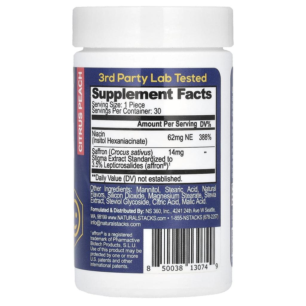 Описание товара: Клинически протестированная добавка Afron® быстрого действия Проверено сторонними организациями на качество Поддерживает хорошее настроение Ваше настроение может сделать ваш день или разрушить его. Mood Bites могут помочь вам оставаться в позитивном настроении. С affron® и ниацином вы получаете два лучших ингредиента для вашего эмоционального здоровья в вкусной жевательной форме. Эта формула помогает улучшить настроение, защищает ваш мозг и помогает снять повседневный стресс. Защитите свой мозг Наш мозг хрупок. Даже малейшее изменение биохимии может повлиять на наше настроение, концентрацию и уровень энергии.. К счастью, афрон® в Mood Bites обладает нейропротекторными свойствами.. Защищая свой мозг этими ингредиентами и поддерживая его необходимыми витаминами, такими как ниацин, вы можете чувствовать себя позитивно. Питайте свой мозг и улучшайте настроение с помощью этих ключевых ингредиентов. Снижение стресса и улучшение глубокого сна Интересное исследование экстракта аффрона показало, что он помогает улучшить качество сна. Исследования показывают, что хороший ночной сон может сделать вас счастливее на следующий день.. Это бесконечный цикл позитивного настроения. Все начинается с Mood Bites.