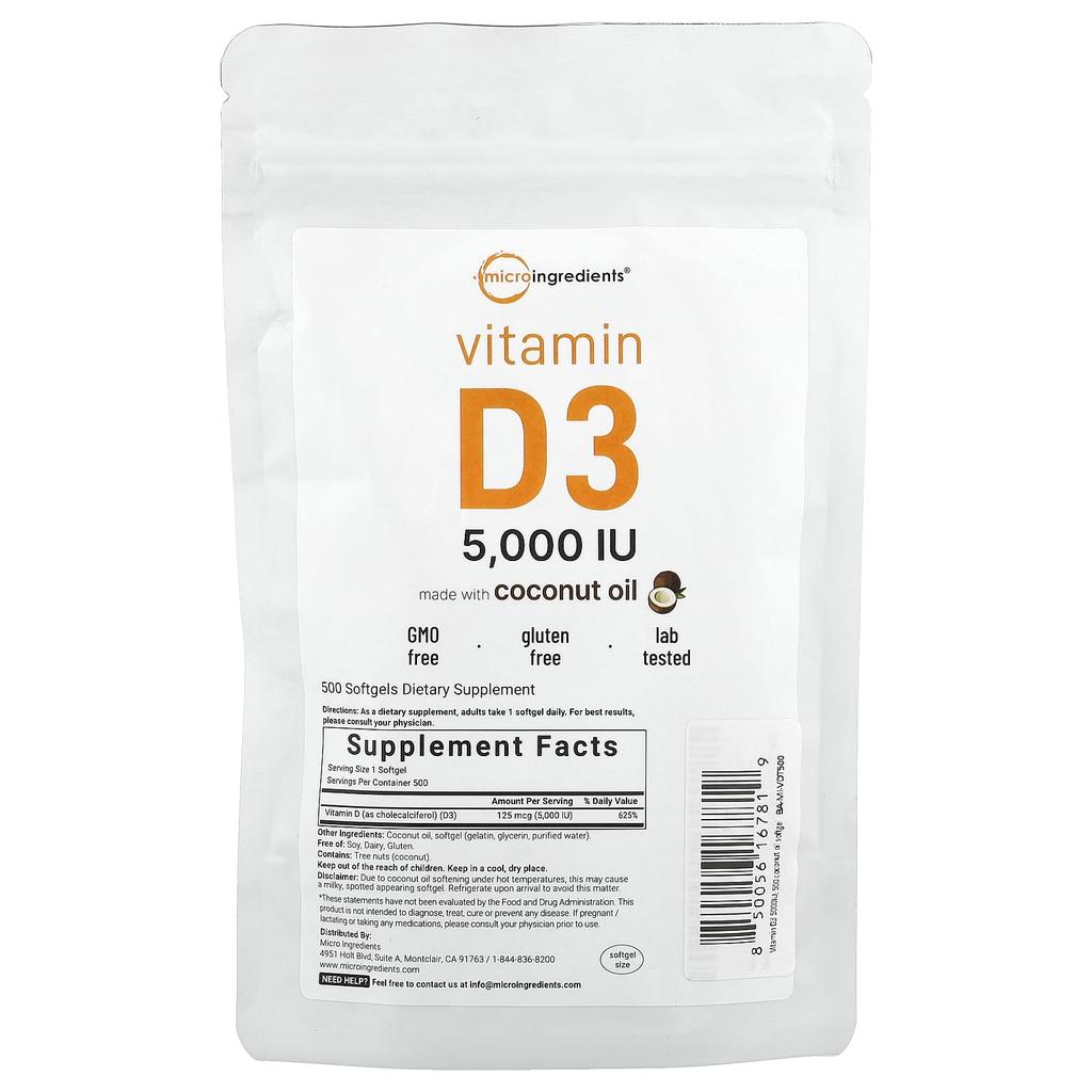 Vitamin D3, 5,000 Iu, 500 Softgels