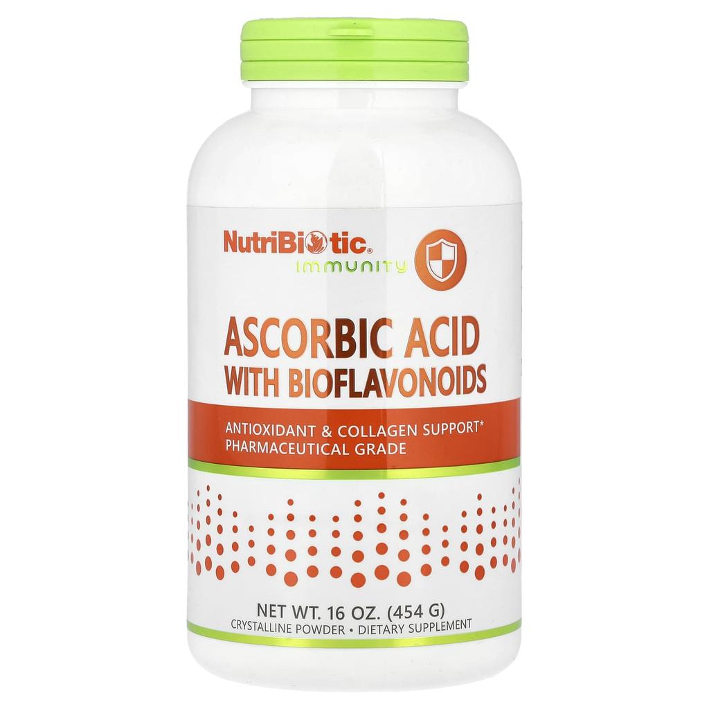 Описание товара: Антиоксидант и добавка коллагенаФармацевтическая степеньДобавкаВеганскийНе содержит глютенpH 3,1‡Не содержит ГМОНе тестируется на животныхНатуральная свежая упаковка Nitro® - Стерильная средаВысокая биодоступностьNutriBiotic® Аскорбиновая кислота с биофлавоноидами обеспечивает 100% витамин С фармацевтической степени (L-аскорбиновая кислота) и биофлавоноиды из лимонов в высокобиодоступном, водорастворимом кристаллическом порошке. Биофлавоноиды, встречающиеся в природе, представляют собой группу водорастворимых растительных пигментов, которые синергически взаимодействуют с витамином C для поддержания здоровья вашего организма.. Витамин С обеспечивает антиоксидантную защиту иммунной системы, а также поддерживает здоровье кровеносных сосудов, тканей, хрящей, костей, глаз и других систем органов.. Витамин С также необходим для биосинтеза коллагена, L-карнитина и нейротрансмиттеров.. Положительные эффекты витамина С необходимы для общего здоровья организма.‡Измерение кислотности/щелочности (нейтральный рН 7,0)