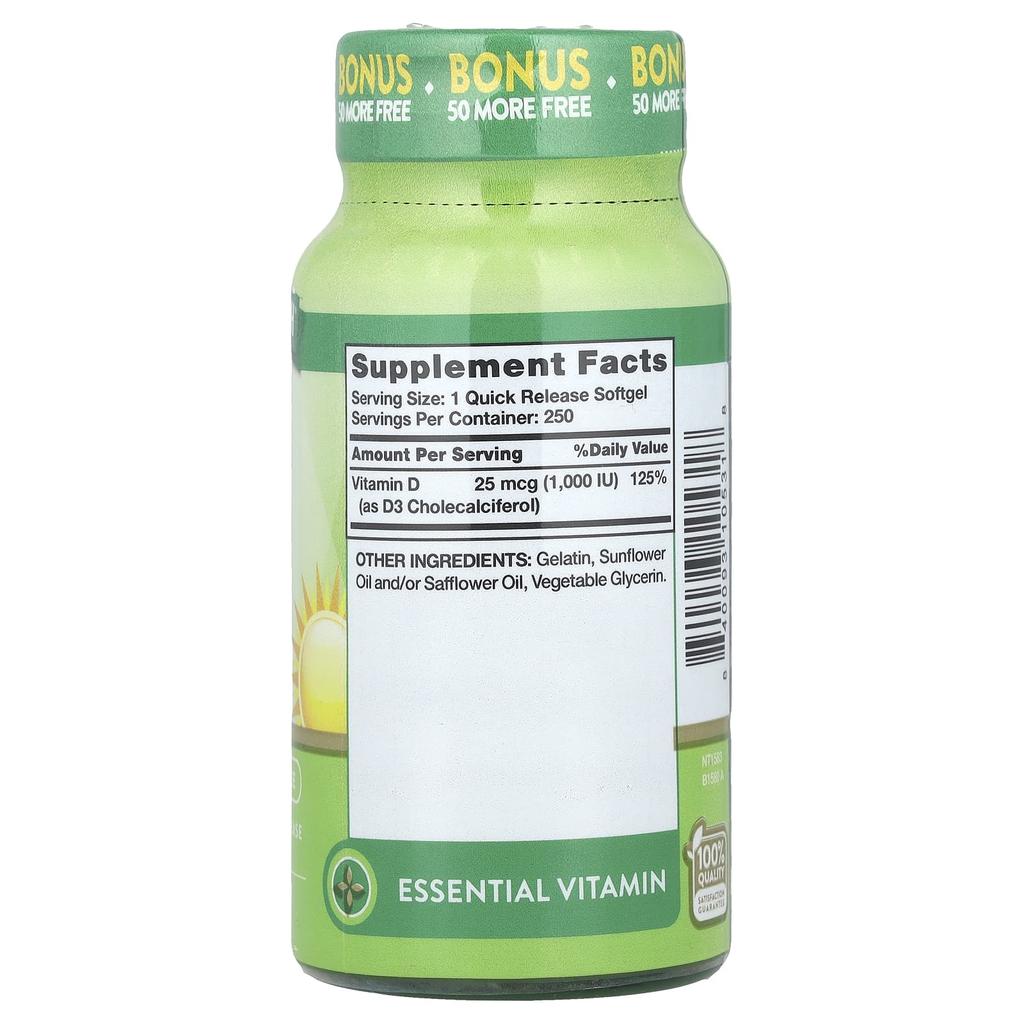 Nature'S Truth, High Potency Vitamin D3, 25Mcg (1,000Iu), 250 Rapid Release Softgels