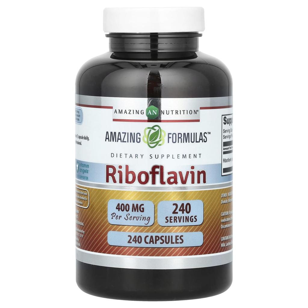 Riboflavin (Vitamin B2). Riboflavin is a water-soluble vitamin found in most animal and plant tissues. It is an essential B vitamin that helps support adrenal function, calm and maintain a healthy nervous system, and facilitate key metabolic processes, including converting food into energy. Amazing Formulas contains 400mg of riboflavin per capsule.