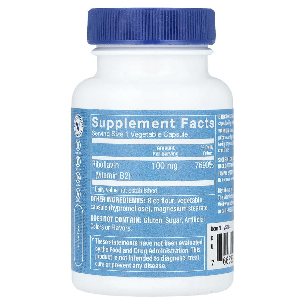 Vitamin B2 Riboflavin, 100Mg, 100 Veggie Capsules