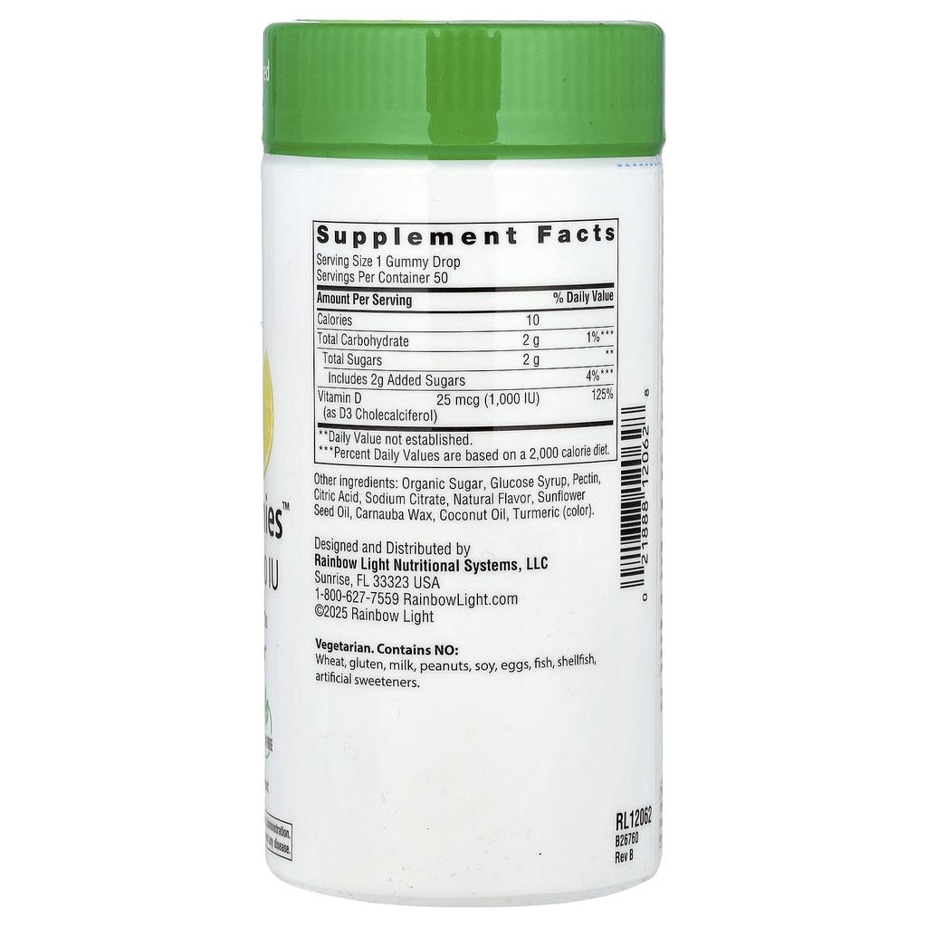 Описание товара: Витамин D3 1000 МЕ Легко усваиваемый витамин D3 Усилитель иммунной системы Без ГМО Подходит для вегетарианцев Без сои Без глютена Добавка Вкусный жевательный витамин D со вкусом лимона настолько вкусный, что вам захочется есть его каждый день. Витамин D — незаменимый нутриент для почти каждой клетки, органа и системы вашего тела, от костей и мышц до иммунной системы.. Многие взрослые не получают достаточно витамина D только от солнца или диеты, поэтому эксперты рекомендуют принимать добавки с витамином D, чтобы помочь вам удовлетворить рекомендуемую суточную потребность.. Поддерживает здоровье иммунной системы Укрепляет кости, зубы и мышцы Сделано с восхитительными фруктовыми вкусами - Восхитительный лимонный вкус Без искусственных подсластителей - Органический сахар