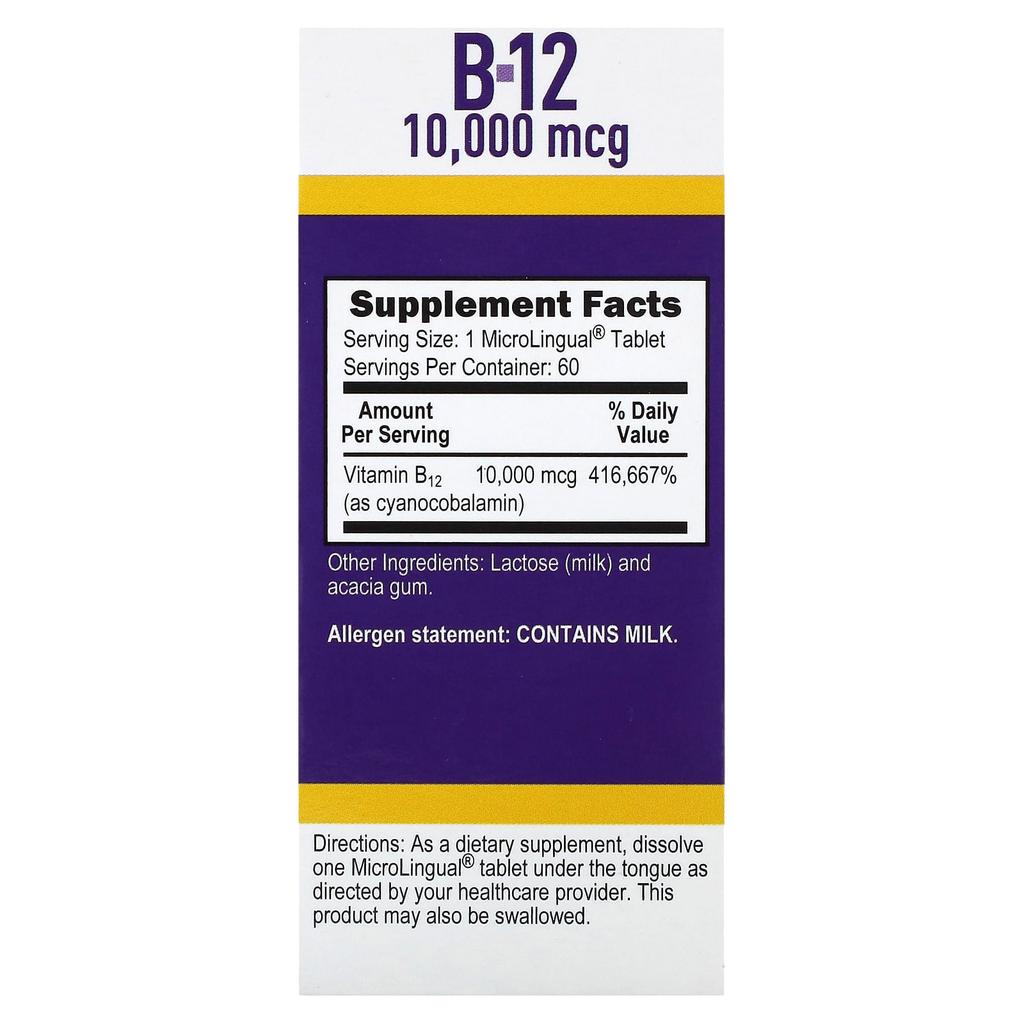 Цианокобаламин B-12, 10 000 мкг, Мгновенно растворимые Микролингвальные 60 таблеток