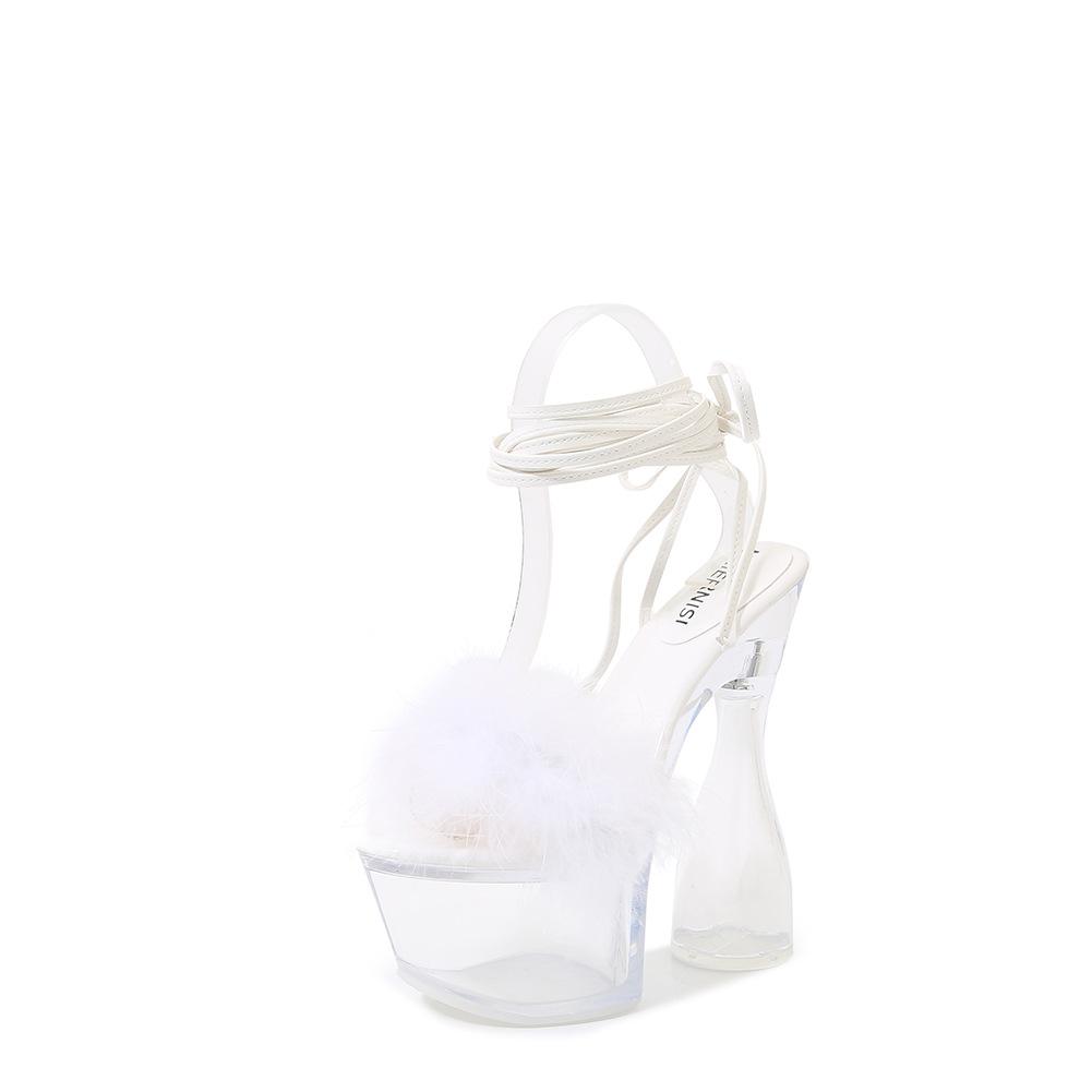 Новая модная личность простая обувь Мао Мао водонепроницаемые хрустальные сандалии на очень высоком каблуке темперамент