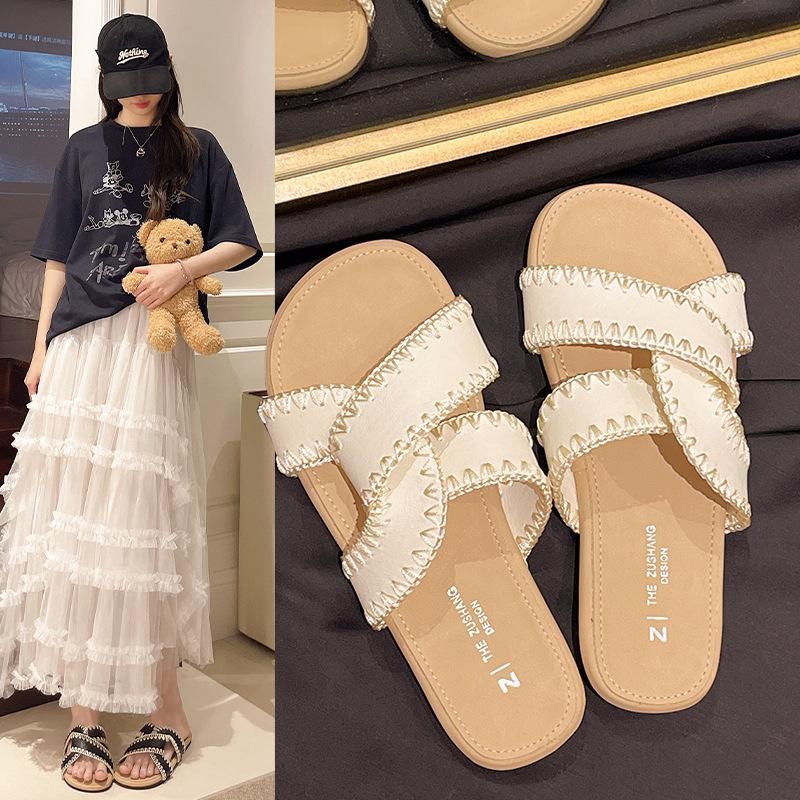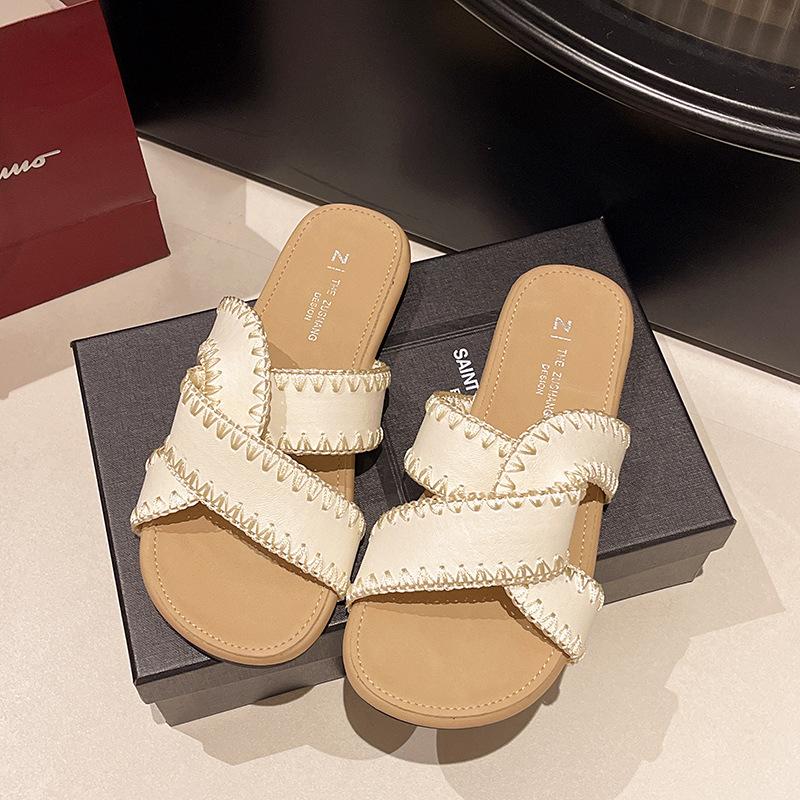 Flat-soled sandals women's outer wear summer new flat-soled cross-strapped retro soft-soled cool slippers