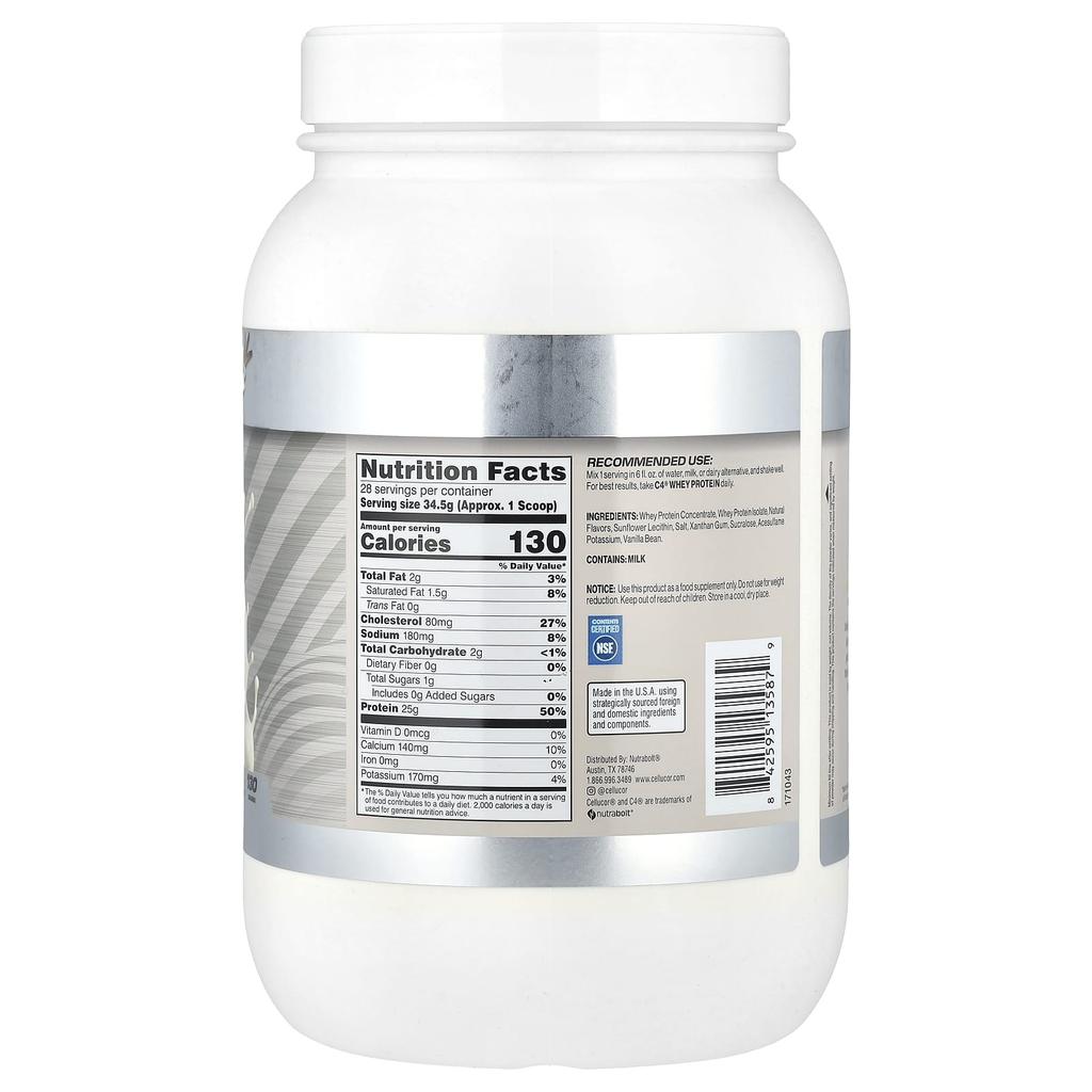 C4 / Cellucor, C4® Сывороточный протеин, Ванильный боб, 966 г (2,13 фунта)