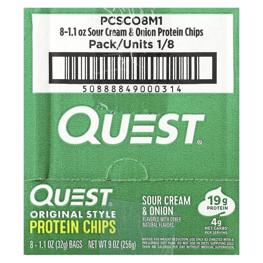 Описание товара: Содержит другие натуральные ароматизаторы 19 г белка на порцию 4 г чистых углеводов на порцию* Сертифицировано кошерное молочное Без глютена Запеченный, не жареный Quest Nutrition стремится создавать продукты, которые вам нужны, из продуктов, которые вы любите. Используя только цельные молочные белки для обеспечения всеми девятью незаменимыми аминокислотами, которые нужны вашему организму, специальные протеиновые чипсы Quest Nutrition приправляются и запекаются для идеального, насыщенного вкуса.. * 5 г углеводов - 1 г клетчатки = 4 г чистых углеводов
