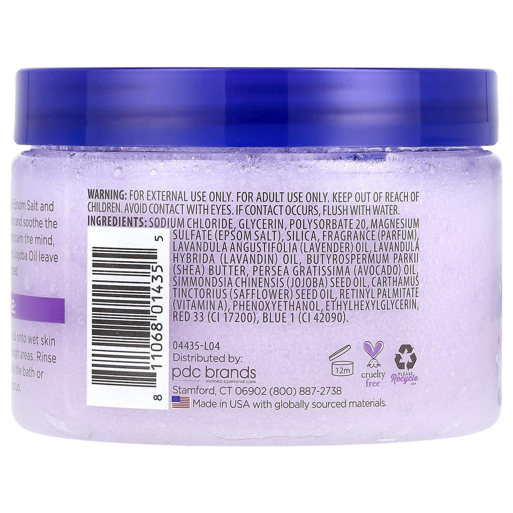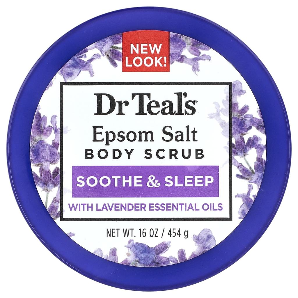 Dr Teal's® Body Scrub gently exfoliates skin and soothes the senses with a blend of pure Epsom salt and essential oils. Lavender essential oil helps calm the mind, while shea butter, avocado oil, and jojoba oil soften and moisturize skin.