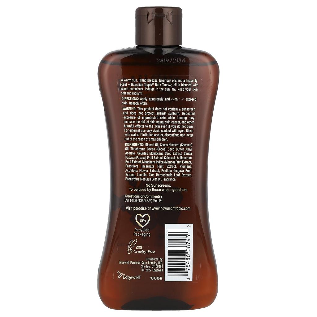Теплое солнце, островной бриз, роскошный лосьон и райский аромат - Масло для загара Hawaiian Tropic® Dark Tanning Oil создано на основе смеси островных растительных компонентов. Насладитесь солнцем и оставьте свою кожу мягкой и сияющей.