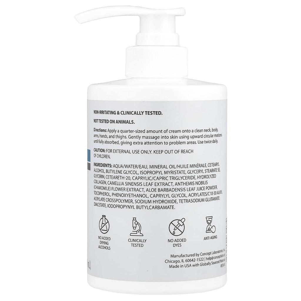 Нанесите количество крема размером с четверть монеты на чистую шею, тело, руки, кисти и бедра.. Уделите особое внимание проблемным зонам и мягко массируйте кожу восходящими круговыми движениями до полного впитывания.. Используйте два раза в день.