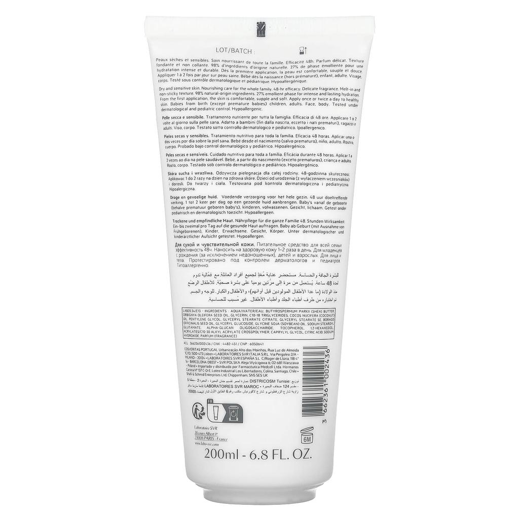 Описание товара: 27% Питательный комплекс + 98% Пребиотические натуральные ингредиенты Питательный, Успокаивающий 48 часов Ультратающий крем Чувствительная, Сухая, Дискомфортная кожа Дерматологически и педиатрически протестировано Гипоаллергенно Для сухой и чувствительной кожи. Питательный уход для всей семьи. Длится 48 часов.. Нежный аромат. Плавится и не прилипает. 98% натуральных ингредиентов. 27% смягчающая фаза обеспечивает мощный и длительный увлажняющий эффект. Кожа чувствует себя комфортно, упругой и мягкой с первого применения. Подходит для младенцев (кроме недоношенных детей). Дети, взрослые. Лицо и тело.