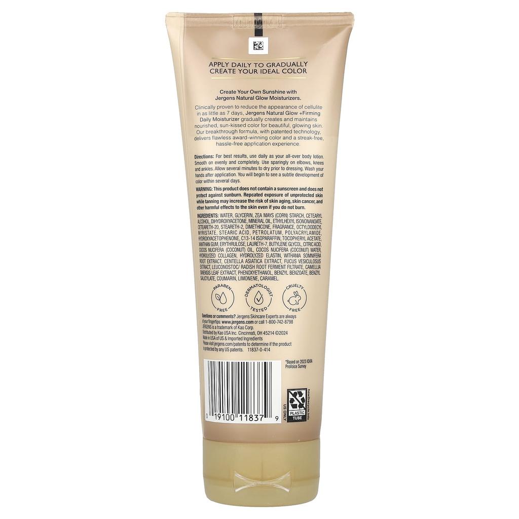 Описание товара: #1 Рекомендованный дерматологами UV-автозагар в США*Идеальный, естественный цвет, который проявляется постепенноПодходит для средних тонов кожиС коллагеном + эластиномНе содержит парабеновНе тестируется на животныхНаносите ежедневно, чтобы создать свой собственный цвет, постепенноПротестировано дерматологамиСоздайте свое собственное сияние с увлажняющим кремом Jergens Natural GlowКлинически доказано, что Jergens Natural Glow + Firming Daily Moisturizer уменьшает целлюлит всего за 7 дней, обеспечивая богатое питание, создавая и поддерживая красивый, сияющий медный цвет лица. Революционная формула, с запатентованной технологией, обеспечивает отмеченный наградами безупречный цвет и беспроблемное нанесение.. *На основе опроса IQVIA ProVoice 2023 года