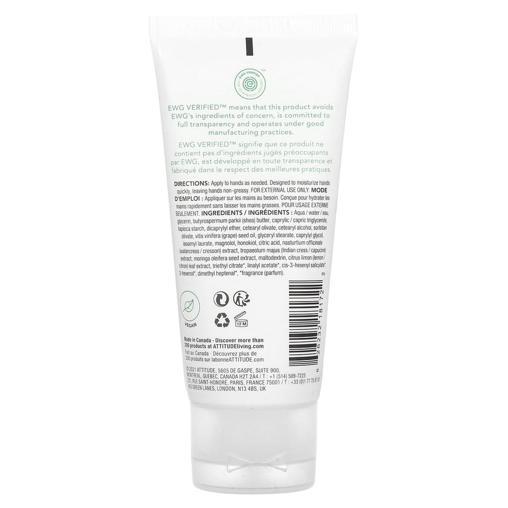 Ingredients: Purified water, glycerin, shea (Butyrospermum parkii) butter, caprylic/capric triglyceride, tapioca starch, dicaprylyl ether, cetearyl olivate, cetearyl alcohol, sorbitan olivate, vitis vinifera (grape) seed oil, glyceryl stearate, caprylyl glycol, isoamyl laurate, magnolol, honokiol, citric acid, nasturtium officinale (watercress) extract, Tropaeolum majus (capucine) extract, Moringa oleifera (moringa) seed extract, maltodextrin, citrus limon (lemon) leaf extract, triethyl citrate*, linalyl acetate*, cis-3-hexenyl salicylate*, 3-hexenol*, dimethylheptenal*, *fragrance.