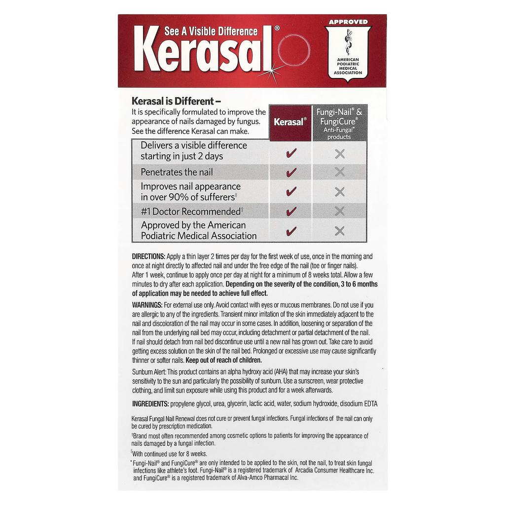Описание товара: Рекомендовано врачом, Популярные продукты†Видимые результаты через 2 дняВидимые изменения Оцените улучшение ногтей всего за 2 дняУменьшает пигментациюНормализует толщину ногтейРаствор для восстановления ногтейКлинически доказано‡3 месяца использования на 3 ногтяБезопасность проверенаТочный, чистый силиконовый аппликатор с наконечникомБез отдушекБез консервантовОдобрено Американской подологической медицинской ассоциацией (АПМА) Керасал особенный. Он специально разработан, чтобы помочь улучшить ногти, поврежденные грибковыми инфекциями.. Посмотрите, какую разницу может сделать для вас Kerasal. Продукты Kerasal® Fungi-Nail® и FungiCure® Противогрибковые** Видимые результаты всего за 2 дня✓X Проникает глубоко в ногти✓X Более 90% пациентов отмечают улучшение состояния ногтей‡✓X Высоко оценены врачами†✓X Одобрены Американской подологической медицинской ассоциацией (АПМА)✓X†На основании наиболее часто рекомендуемого бренда для пациентов для улучшения внешнего вида ногтей, поврежденных грибковыми инфекциями, согласно данным файла исследования, рекомендованного подологами в 2018 году.‡ Более 90% участников клинических испытаний отметили видимое улучшение после 8 недель использования согласно инструкции.** Fungi-Nail® и FungiCure® — это продукты для использования только на коже, а не на ногтях, для лечения грибковых инфекций кожи, таких как микоз стопы.