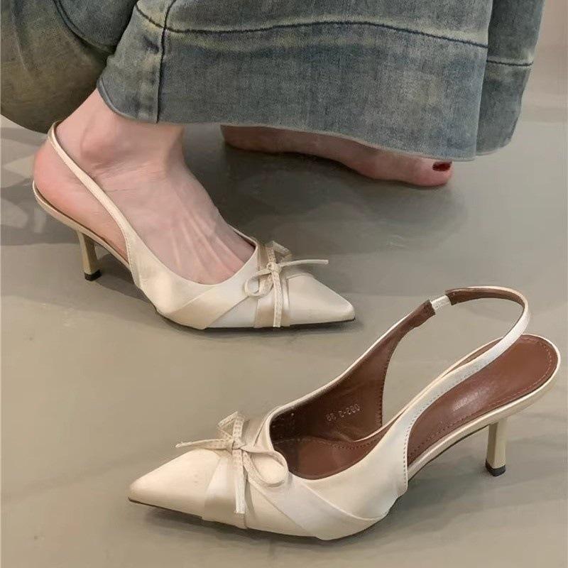 Нежный вечерний бриз туфли на высоком каблуке женственность элегантный бант острый носок шпилька сумка голова сандалии