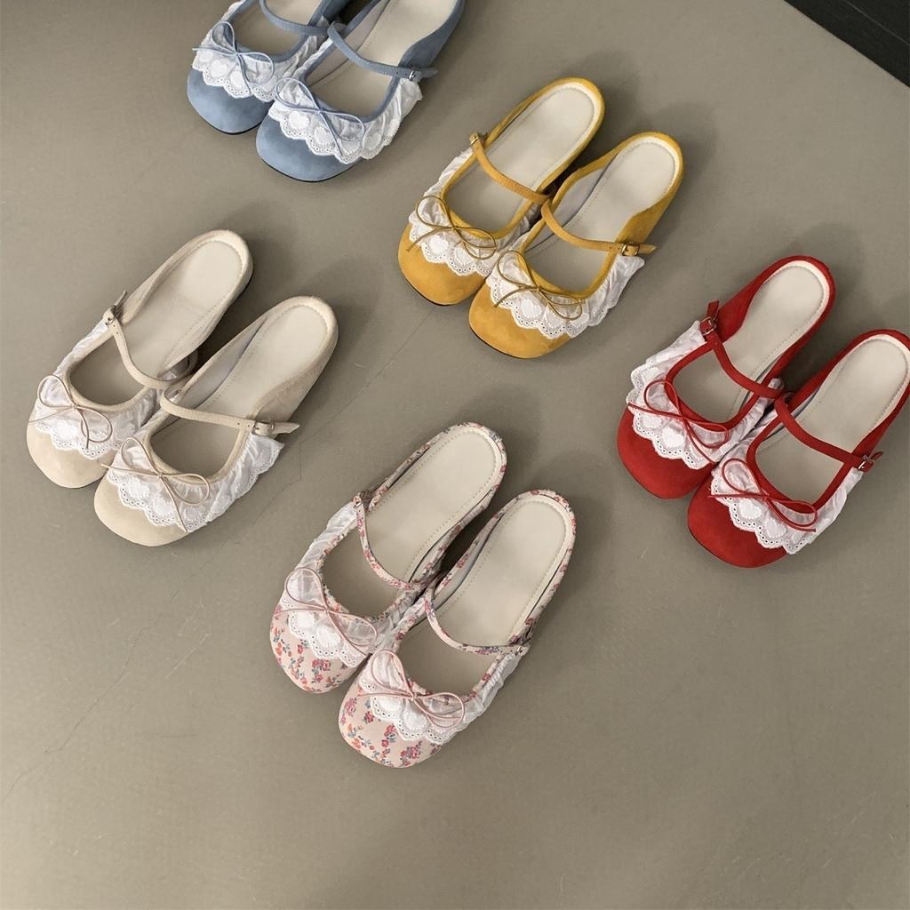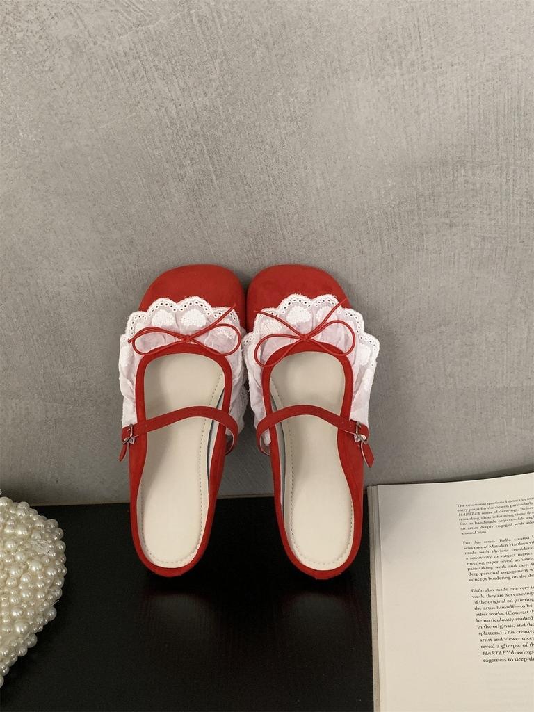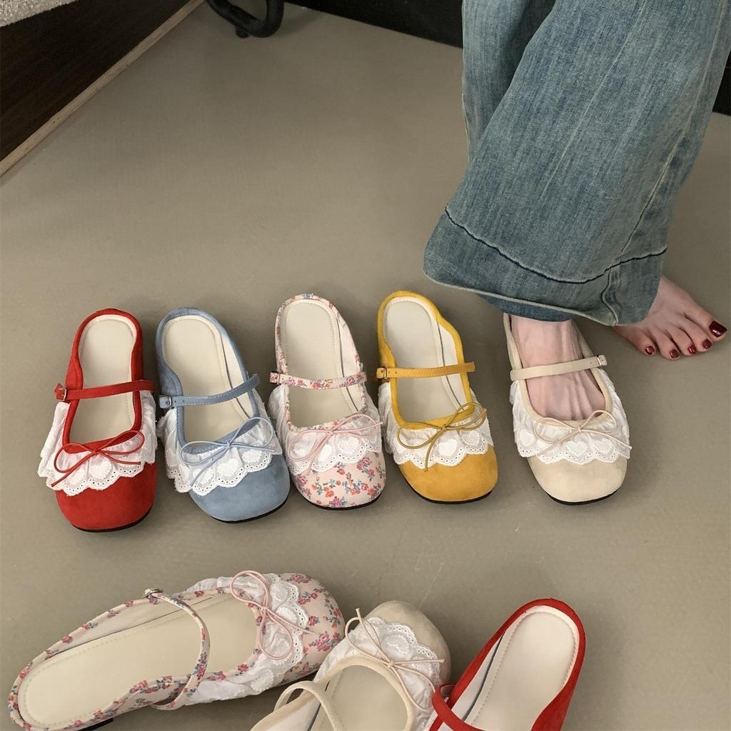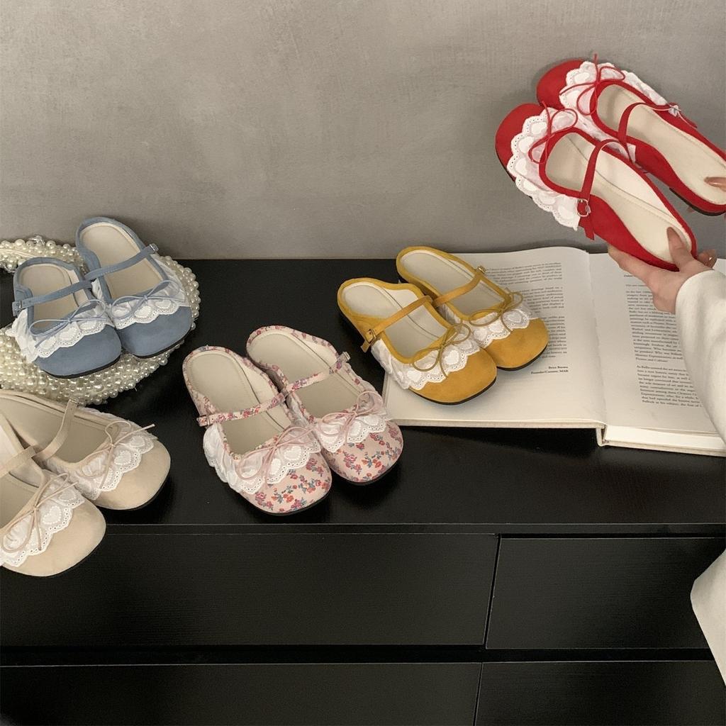 Кружевные туфли Мэри Джейн Женские Плоские Сладкие Легкие С Открытым Ртом Половина Шлепанцы Юбка