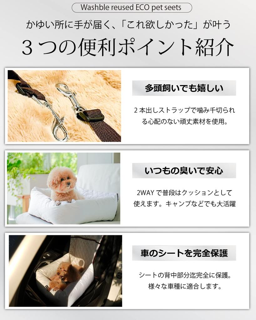Когда вы доберетесь до места назначения, вы можете использовать его как кровать для вождения, а когда вы остановитесь в месте назначения, вы можете сложить заднюю крышку и убрать ее на хранение, чтобы превратить его в подушку.. В отличие от больших водительских сидений, оно портативное и легко устанавливается, так что вы можете расслабиться, где бы вы ни находились, в вашем любимом месте.. [Противопрыжковый ремень] Два противопрыжковых ремня можно надежно закрепить на сиденье, поэтому безопасность в машине идеальна.. Поводок против прыжков можно прикрепить к шлейке, и он изготовлен из прочного ремня, поэтому не порвется, даже если его укусят.. Его можно легко установить в любую модель автомобиля, и он совместим как с пассажирским сиденьем, так и с задним сиденьем.. Обеспечивая безопасное и надежное пространство для вашей собаки, это предотвращает травмы во время вождения и попадание на водительское сиденье во время движения.. *Нарушением Закона о дорожном движении является держать собаку на коленях во время вождения. [Можно использовать и летом, и зимой] Подушку можно использовать обеими сторонами в зависимости от сезона, а летом гладкая сетчатая ткань дышит, обеспечивая ощущение прохлады и комфорта без перегрева.. Зимой пушистый материал согревает вашего питомца и защищает его от холода.. Кроме того, подушечная часть съемная и ее можно стирать, поэтому вы всегда можете поддерживать ее в чистоте.