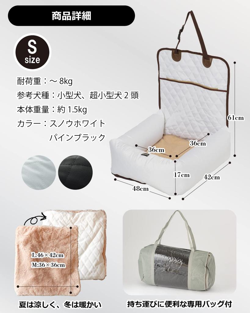 Кроме того, он менее склонен к накоплению статического электричества по сравнению с хлопком, поэтому ваш питомец может чувствовать себя комфортно.. ■Размер S: Внешние размеры: ширина 48 см x глубина 42 см, внутренние размеры: 32 x 32 см, идеально для двух маленьких или очень маленьких собак ■Размер L: Внешние размеры: ширина 55 см x глубина 50 см, внутренние размеры: 42 x 42 см, идеально подходит для двух средних или маленьких собак ■Аксессуары: 2 ремешка в комплекте ■Цвета: Сосна черная, снежно-белая ■Примечания: При стирке поместите в сетку для стирки, чтобы предотвратить повреждение стирального слоя. Обязательно используйте ремни при размещении собаки на подушке.. Кроме того, из-за сжатия сразу после получения продукта могут быть заметны складки, но по мере того, как подушка начнет впитывать воздух, складки со временем станут менее заметными.