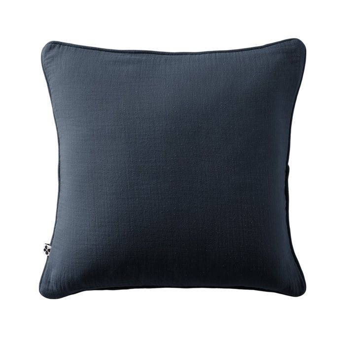 Coussin déhoussable 45 x 45 cm GAIA Bleu nuit – Gaze de coton avec passepoil élégant