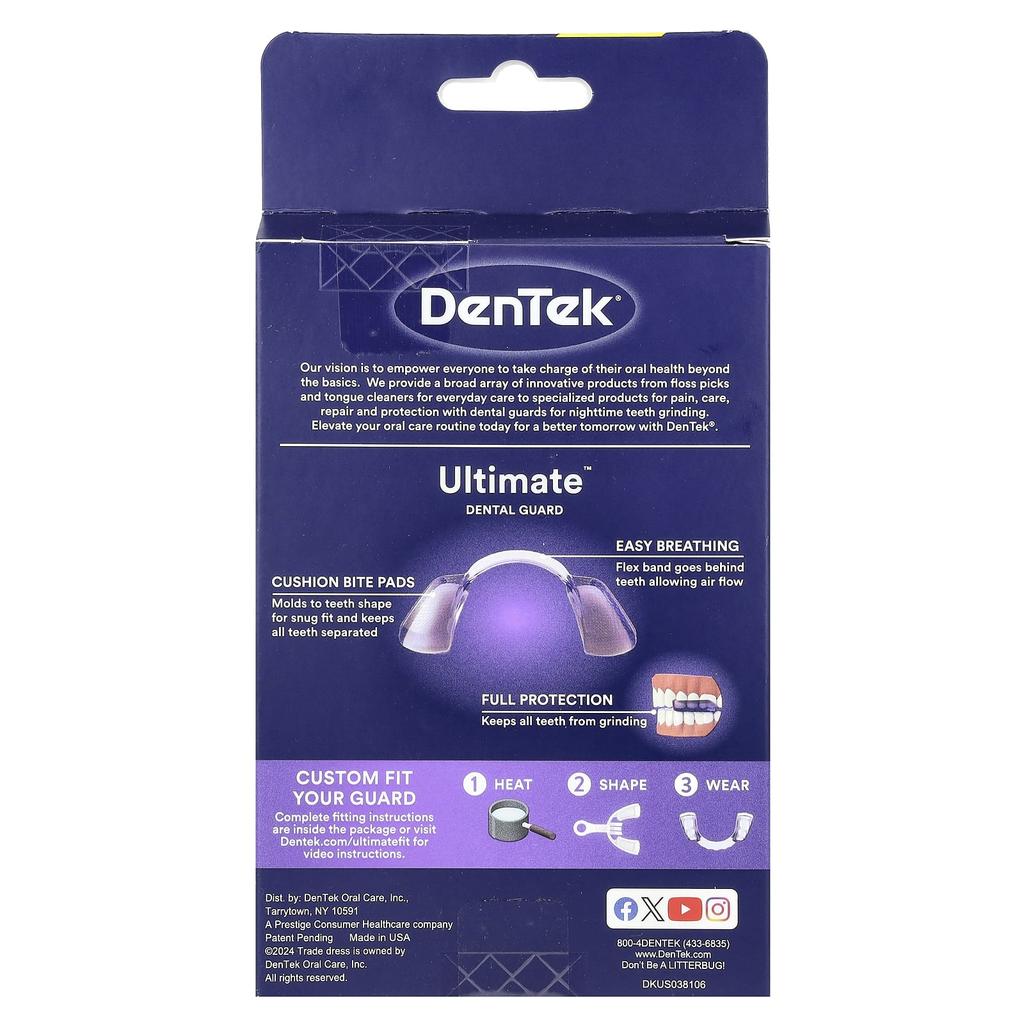 Инструкции по применению продукта: Капы DenTek Ultimate® рекомендованы для использования в профилактике бруксизма или ночного скрежета зубами.. Они разработаны для уменьшения повреждения зубов и снижения шума, вызванного скрежетанием.