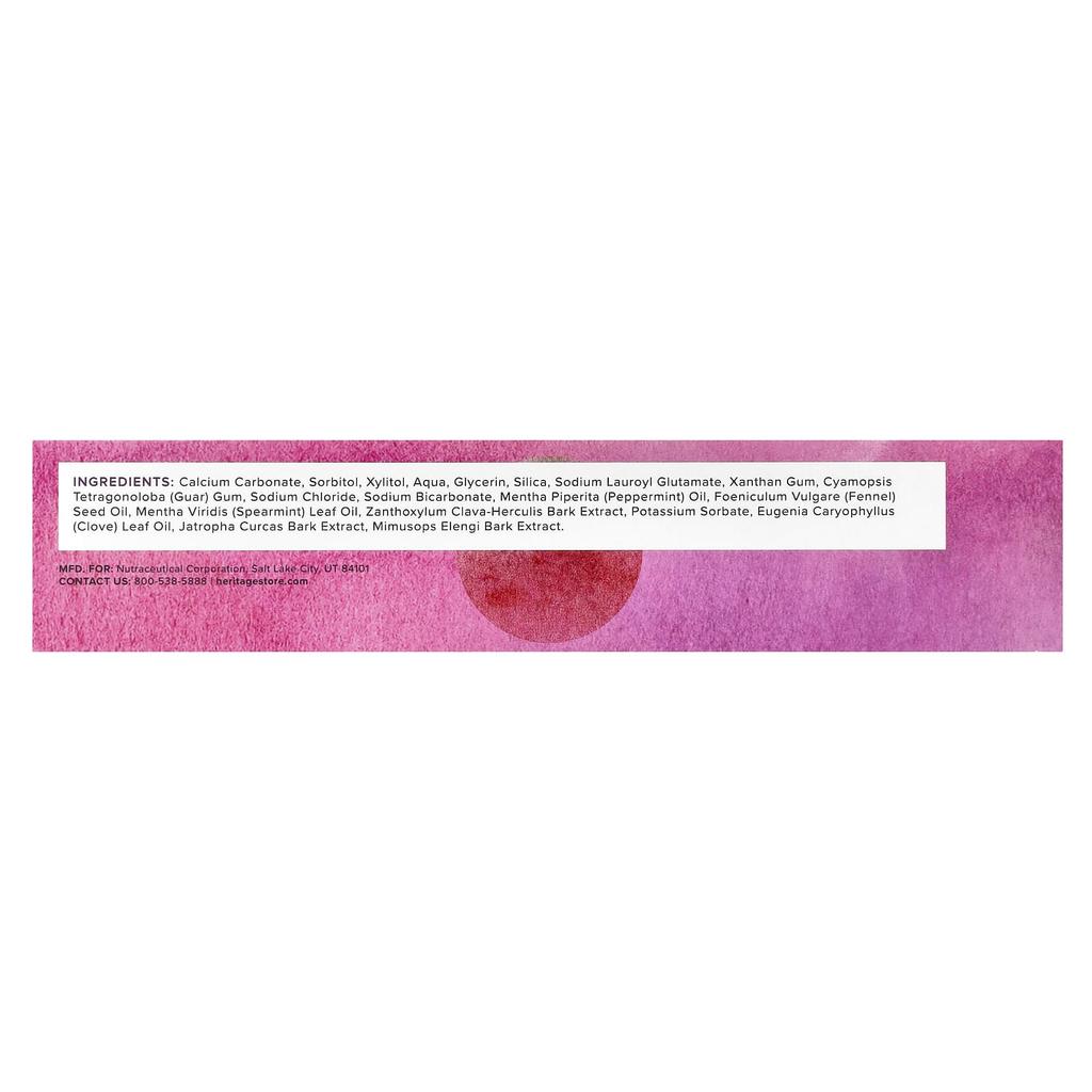 Ингредиенты: Карбонат кальция, Сорбитол, Ксилит, Очищенная вода, Глицерин, Диоксид кремния, Натрия лауроилглутамат, Ксантановая камедь, Гуаровая камедь, Хлорид натрия, Бикарбонат натрия, Mentha Piperita (мятный) Масло, Foeniculum Vulgare (Фенхель) Масло семян мяты зеленой (Мята) Листовое масло, Zanthoxylum Clava-Herculis (Арахис) Экстракт коры, сорбат калия, Eugenia Caryophyllus (Гвоздика) Масло листьев, Экстракт коры Jatropha Curcas, Экстракт коры Mimusops Elengi.